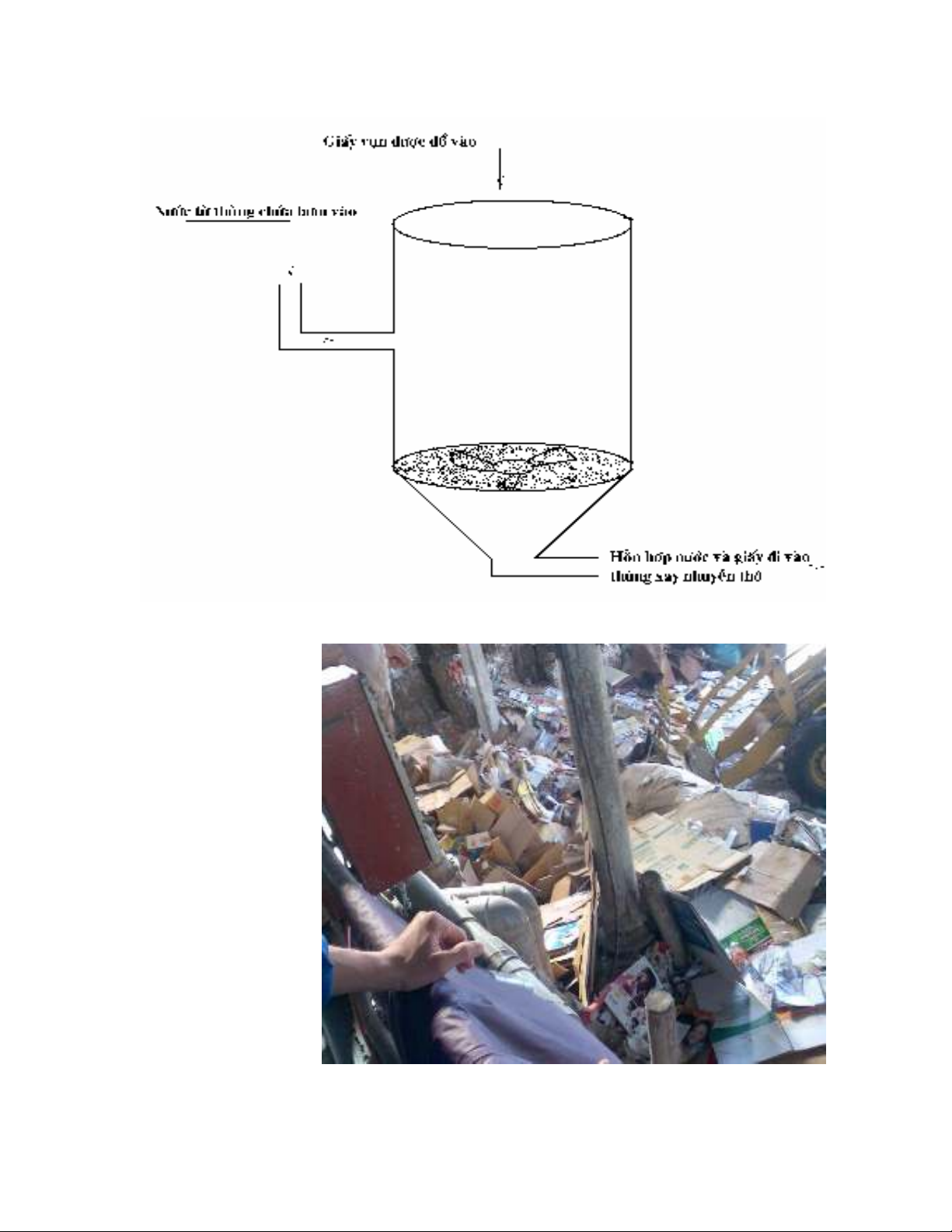 dùng để xay nát giấy vụn. Nước từ thùng chứa được bơm