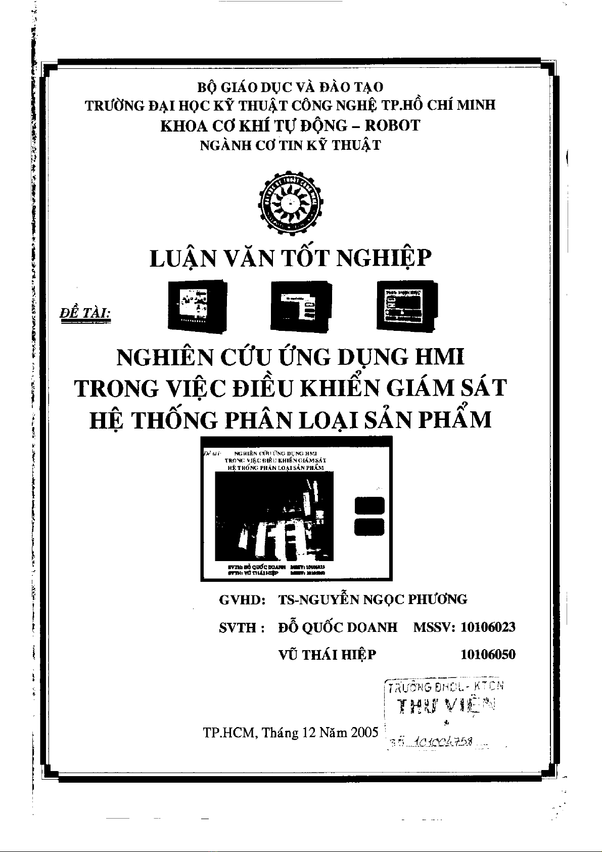 Luận văn Nghiên cứu ứng dụng HMI trong việc điều khiển giám sát hệ thống phân loại sản phẩm - Đỗ Quốc Doanh, Vũ Thái Hiệp