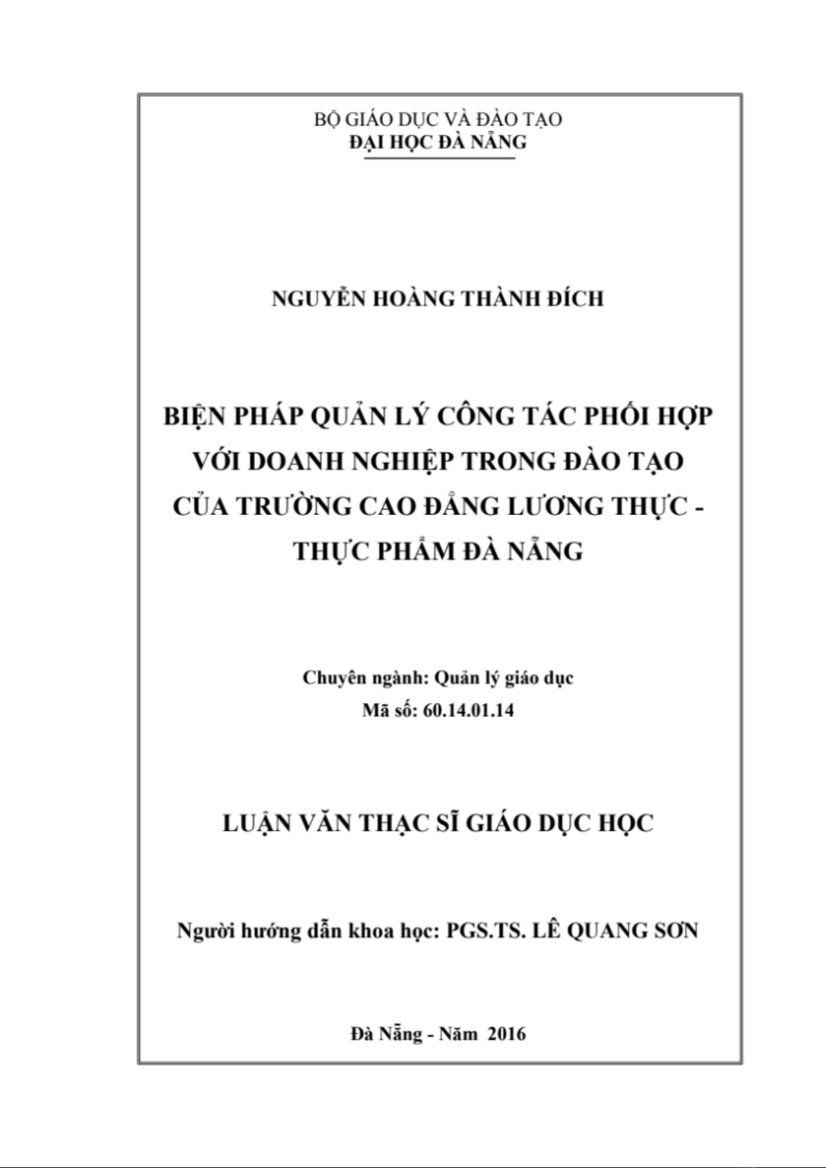 Luận văn Thạc sĩ Giáo dục học: Biện pháp quản lý công tác phối hợp với doanh nghiệp trong đào tạo của trường Cao đẳng Lương thực - Thực phẩm Đà Nẵng