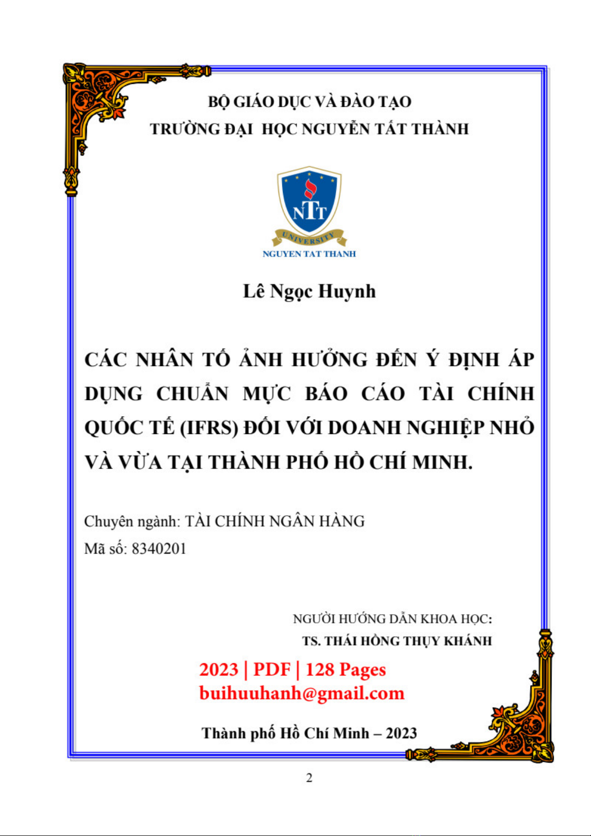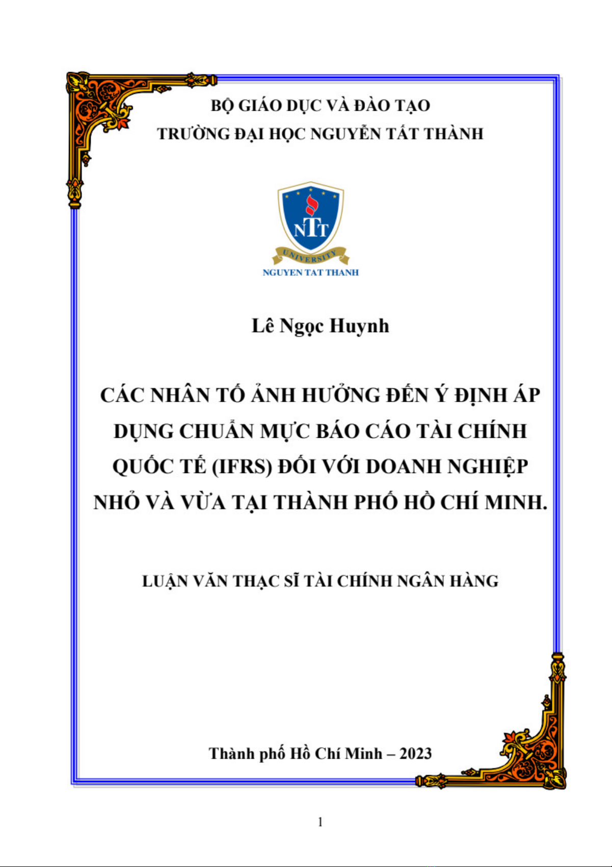 Nghiên cứu khoa học về yếu tố ảnh hưởng quyết định áp dụng chuẩn mực báo cáo tài chính quốc tế IFRS của doanh nghiệp nhỏ và vừa tại Thành phố Hồ Chí Minh. Nghiên cứu đã phân tích các yếu tố như quyền hội nhập, chi phí và lợi ích, nhận thức về IFRS, môi trường kinh doanh và tổ chức nội bộ ảnh hưởng đến quyết định áp dụng IFRS.