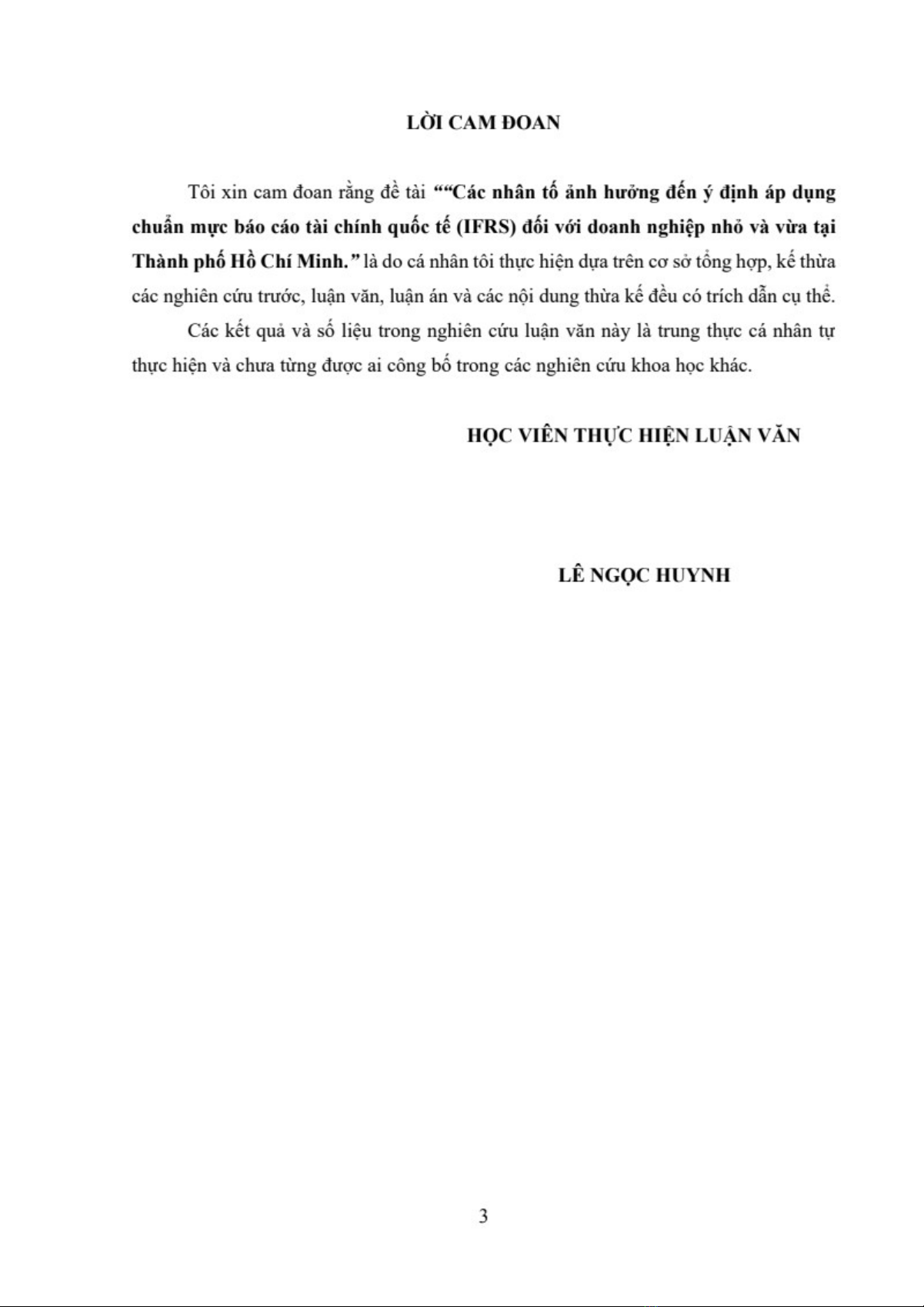 Tài liệu nghiên cứu khoa học đề cập đến việc áp dụng chuẩn mực báo cáo tài chính quốc tế IFRS cho doanh nghiệp nhỏ và vừa tại Thành phố Hồ Chí Minh. Nghiên cứu đã được thực hiện theo hai giai đoạn: tiến sát và phân tích. Trong giai đoạn tiến sát, các yếu tố như quyền hội nhập, chi phí và lợi ích, nhận thức về IFRS, môi trường kinh doanh và tổ chức nội bộ đã được phân tích. Trong giai đoạn phân tích, các yếu tố ảnh hưởng đến quyết định áp dụng IFRS đã được đánh giá và so sánh theo mức độ ảnh hưởng. Kết quả nghiên cứu cho thấy rằng quyền hội nhập và nhận thức về IFRS là hai yếu tố chính ảnh hưởng đến việc áp dụng IFRS. Chi phí và lợi ích có tác động hạn chế hơn, nhưng vẫn không thể bỏ qua.