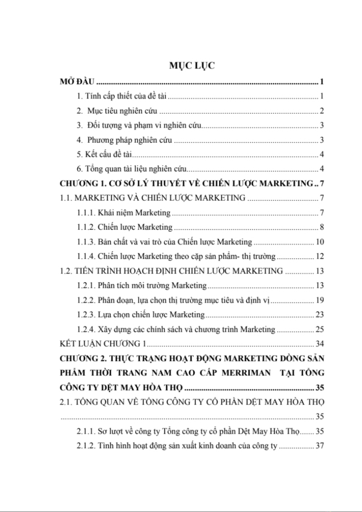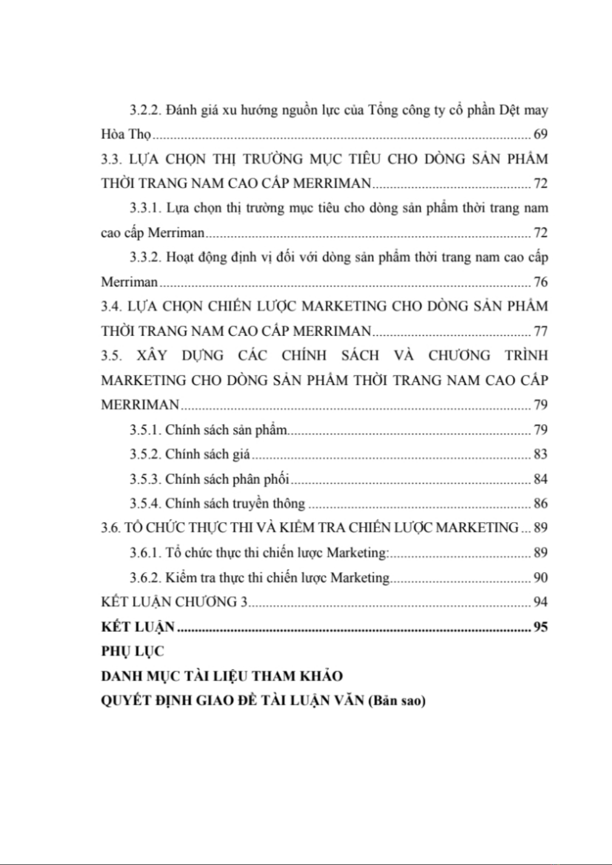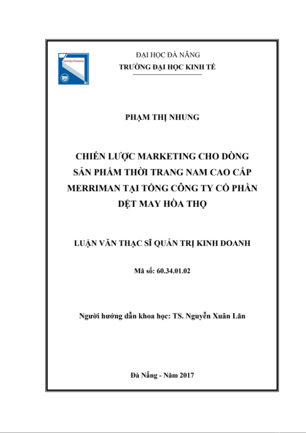 Luận văn Thạc sĩ Quản trị kinh doanh: Chiến lược marketing cho dòng sản phẩm thời trang nam cao cấp Merriman tại Tổng Công ty cổ phần Dệt may Hòa Thọ