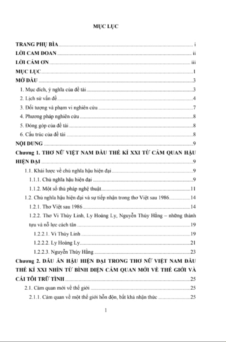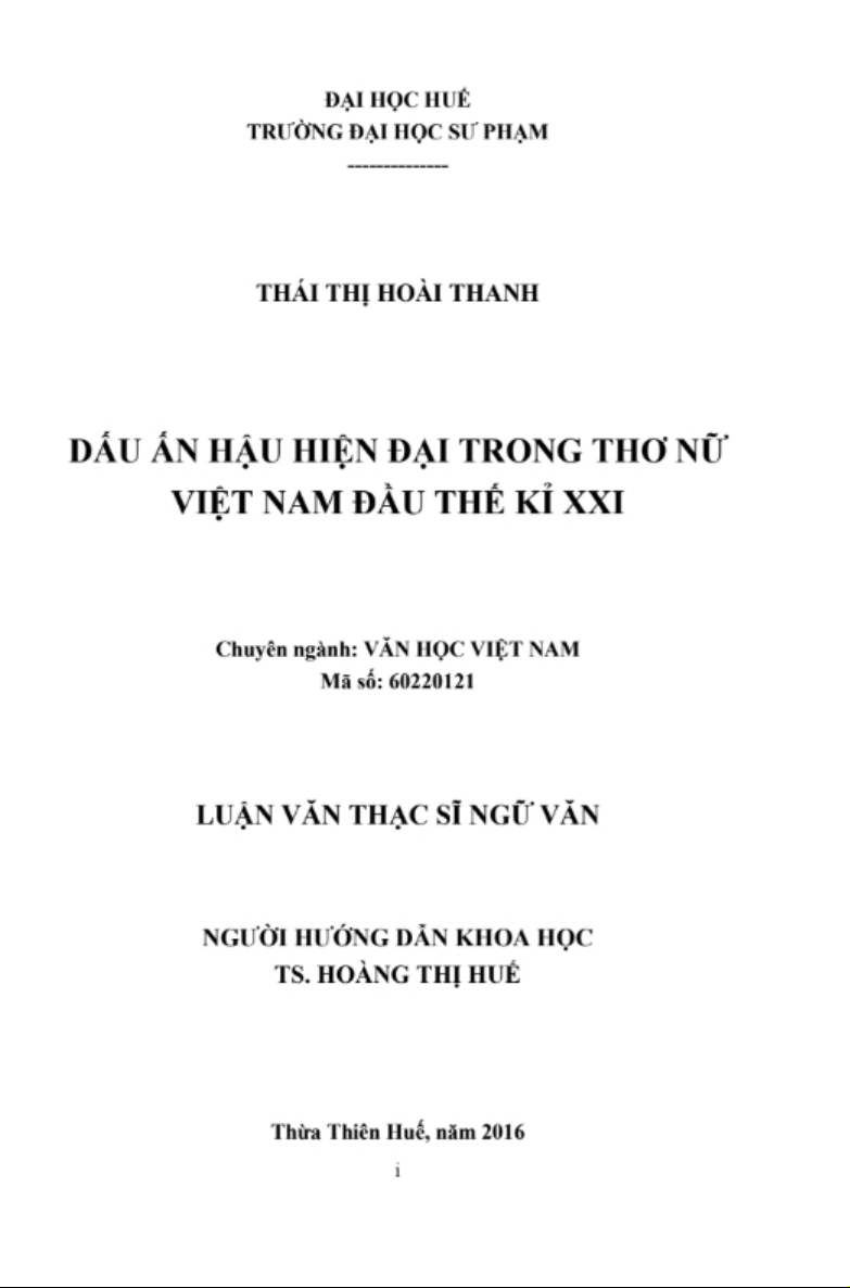 Luận văn Thạc sĩ Ngữ văn: Dấu ấn hậu hiện đại trong thơ nữ Việt Nam đầu thế kỷ XXI