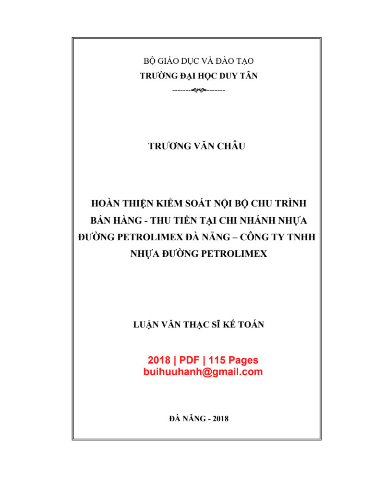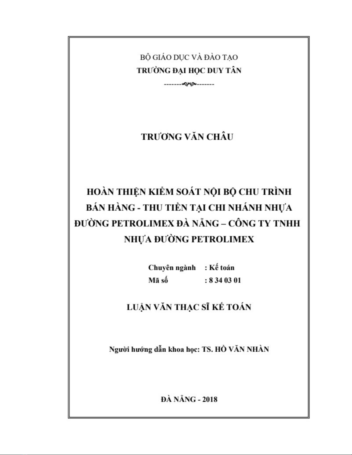 Đề tài Luận văn Thạc sĩ Kế toán: Hoàn thiện kiểm soát nội bộ chu trình bán hàng - thu tiền tại Chi nhánh nhựa đường Petrolimex Đà Nẵng - Công ty TNHH Nhựa đường Petrolimex, là một nghiên cứu khoa học về kiểm soát nội bộ chu trình bán hàng thu tiền trong doanh nghiệp. Nghiên cứu này đánh giá thực trạng công tác kiểm soát nội bộ chu trình bán hàng - thu tiền tại Chi nhánh nhựa đường Petrolimex Đà Nẵng và đề xuất giải pháp để tăng cường công tác kiểm soát. Tốt nghiệp này có thể giúp các doanh nghiệp trong ngành xây dựng và phát triển hệ thống kiểm soát nội bộ chu trình bán hàng hiệu quả.