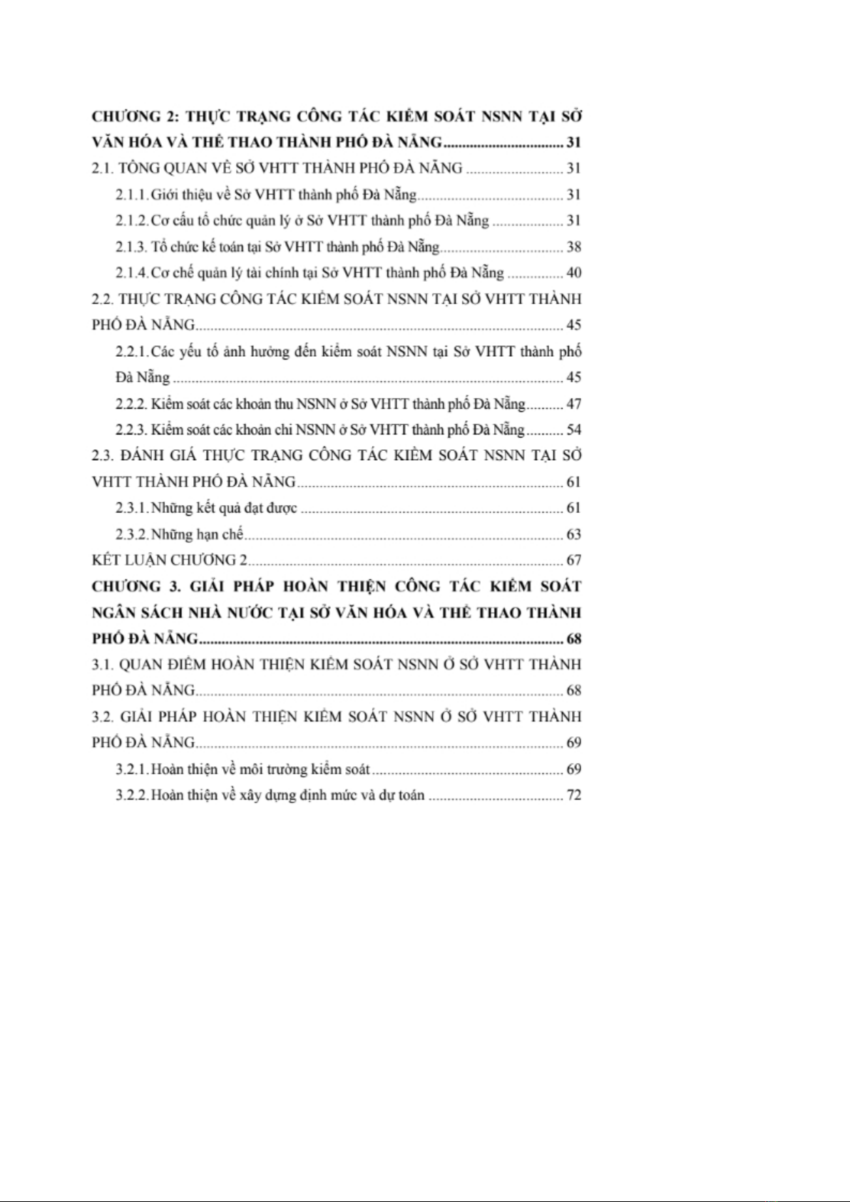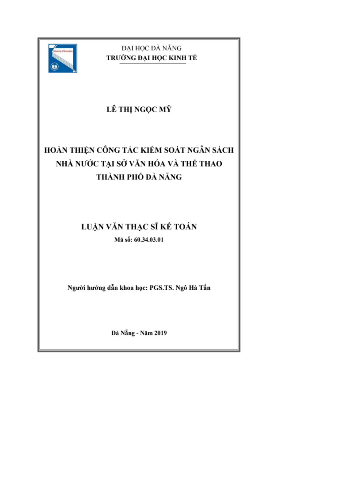 Luận văn Thạc sĩ Kế toán: Hoàn thiện công tác kiểm soát ngân sách nhà nước tại Sở Văn hóa và Thể thao thành phố Đà Nẵng