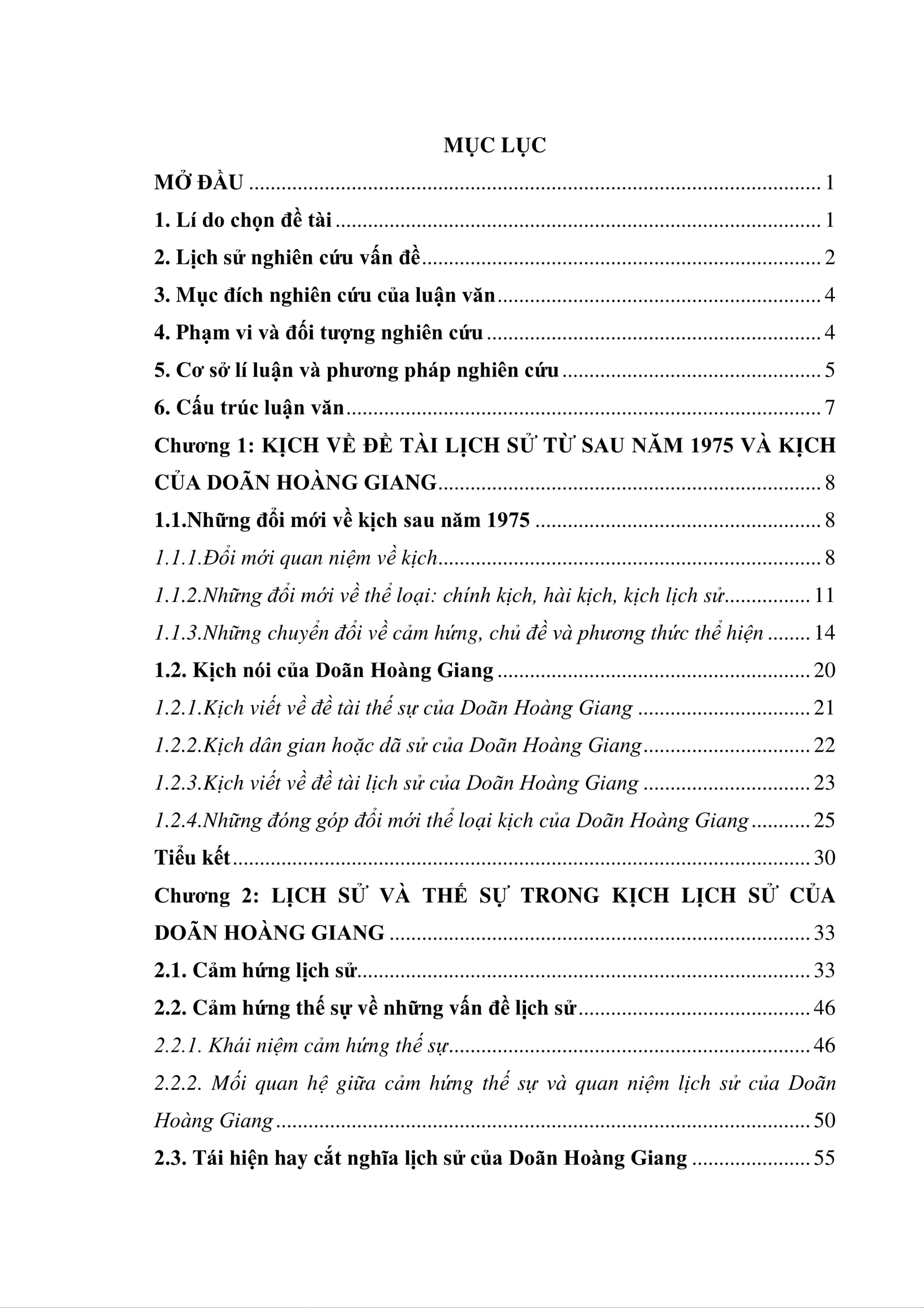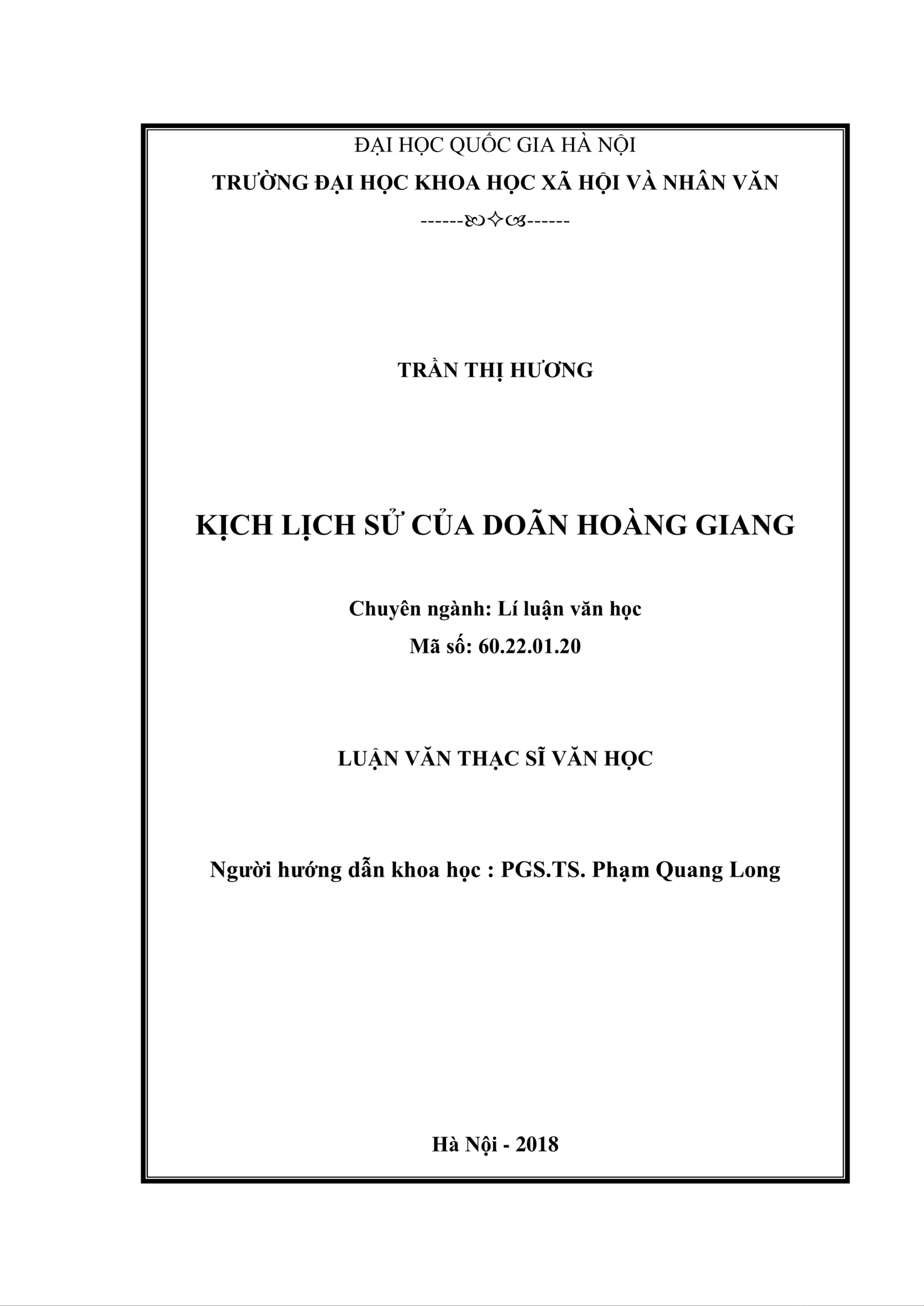 Luận văn Thạc sĩ Văn học: Kịch lịch sử của Doãn Hoàng Giang