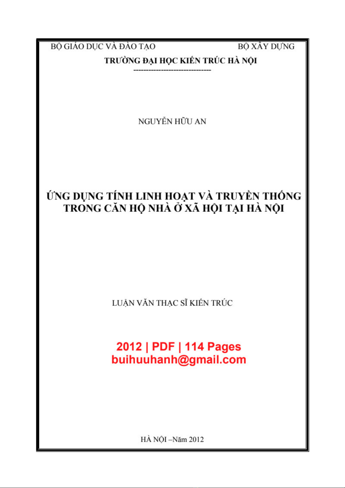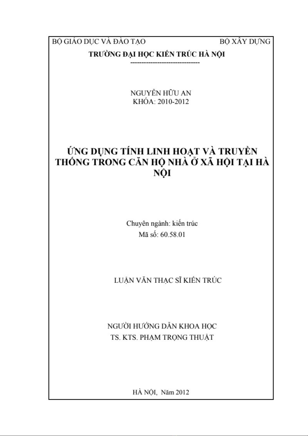 Luận văn Thạc sĩ Kiến trúc: Ứng dụng tính linh hoạt và truyền thống trong căn hộ nhà ở xã hội tại Hà Nội
