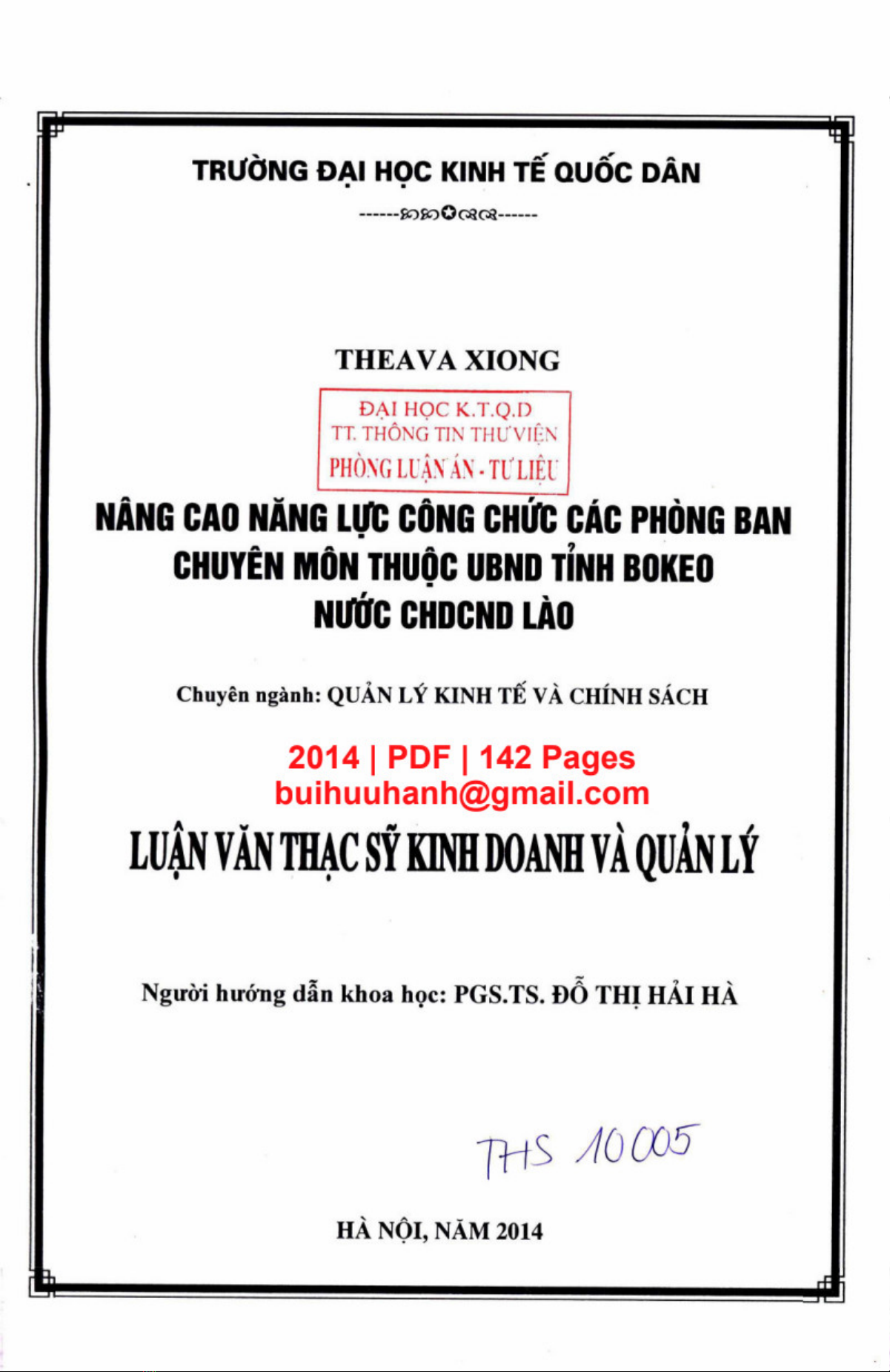 Luận văn Thạc sĩ Kinh doanh và quản lý 'Nâng cao năng lực công chức các phòng ban chuyên môn thuộc UBND tỉnh Bonkeo nước CHDCND Lào' cung cấp nghiên cứu về vấn đề năng lực công chức phòng ban chuyên môn của Ủy ban nhân dân tỉnh, phân tích thực trạng tại giai đoạn 2010-2014 và giải pháp để nâng cao kỹ năng, kinh nghiệm và hiệu quả làm việc cho phòng ban chuyên môn tại UBND Bokeo nước CHDCND Lào.