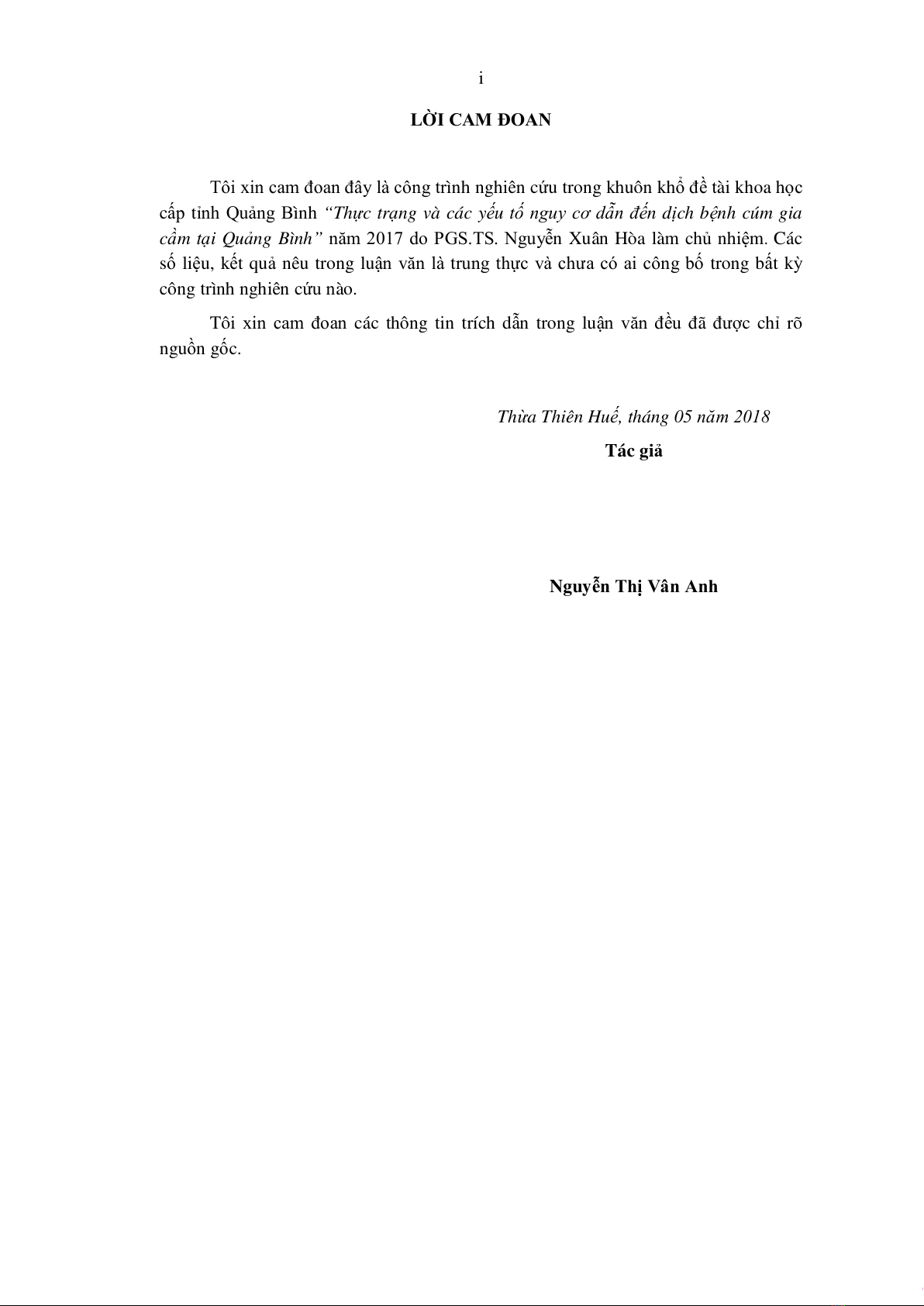 cấp tỉnh Quảng Bình “Thực trạng và các yếu tố nguy cơ dẫn đến dịch bệnh cúm gia