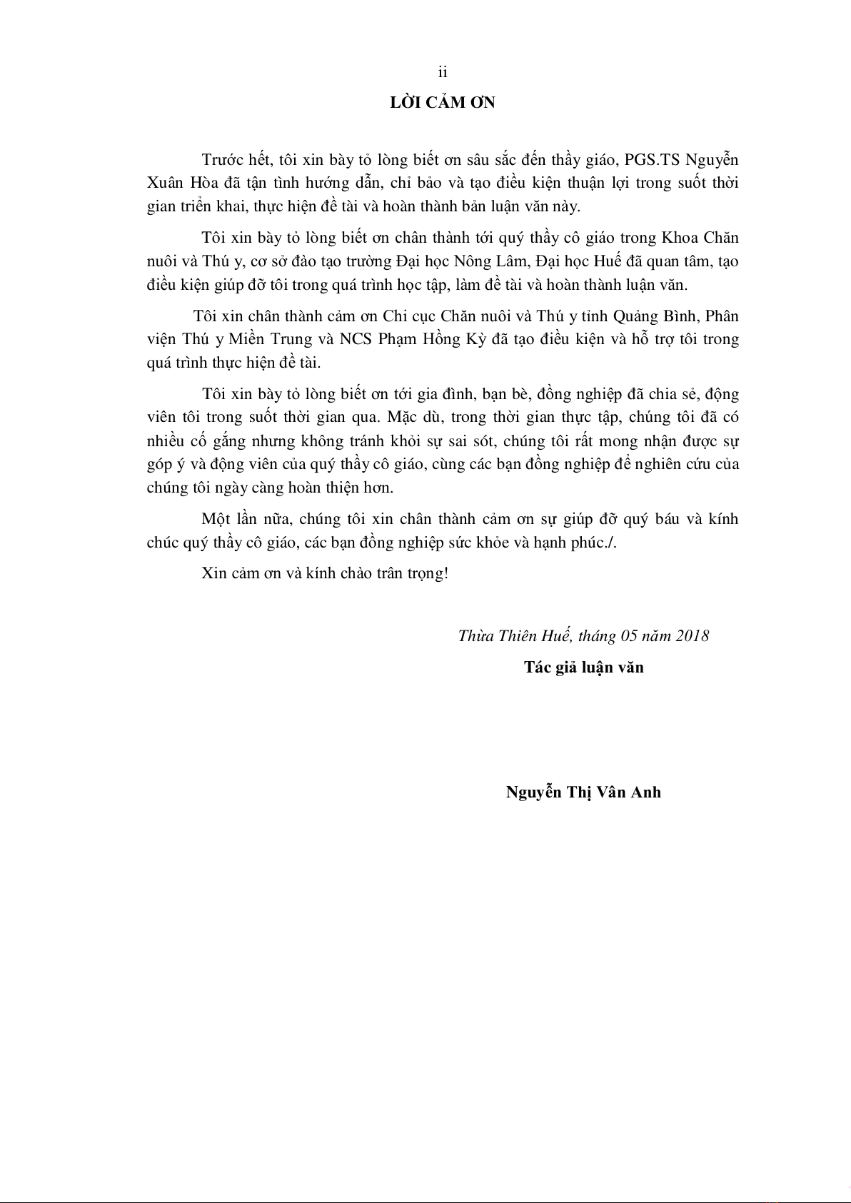 Tôi xin chân thành cảm ơn Chi cục Chăn nuôi và Thú y tỉnh Quảng Bình, Phân