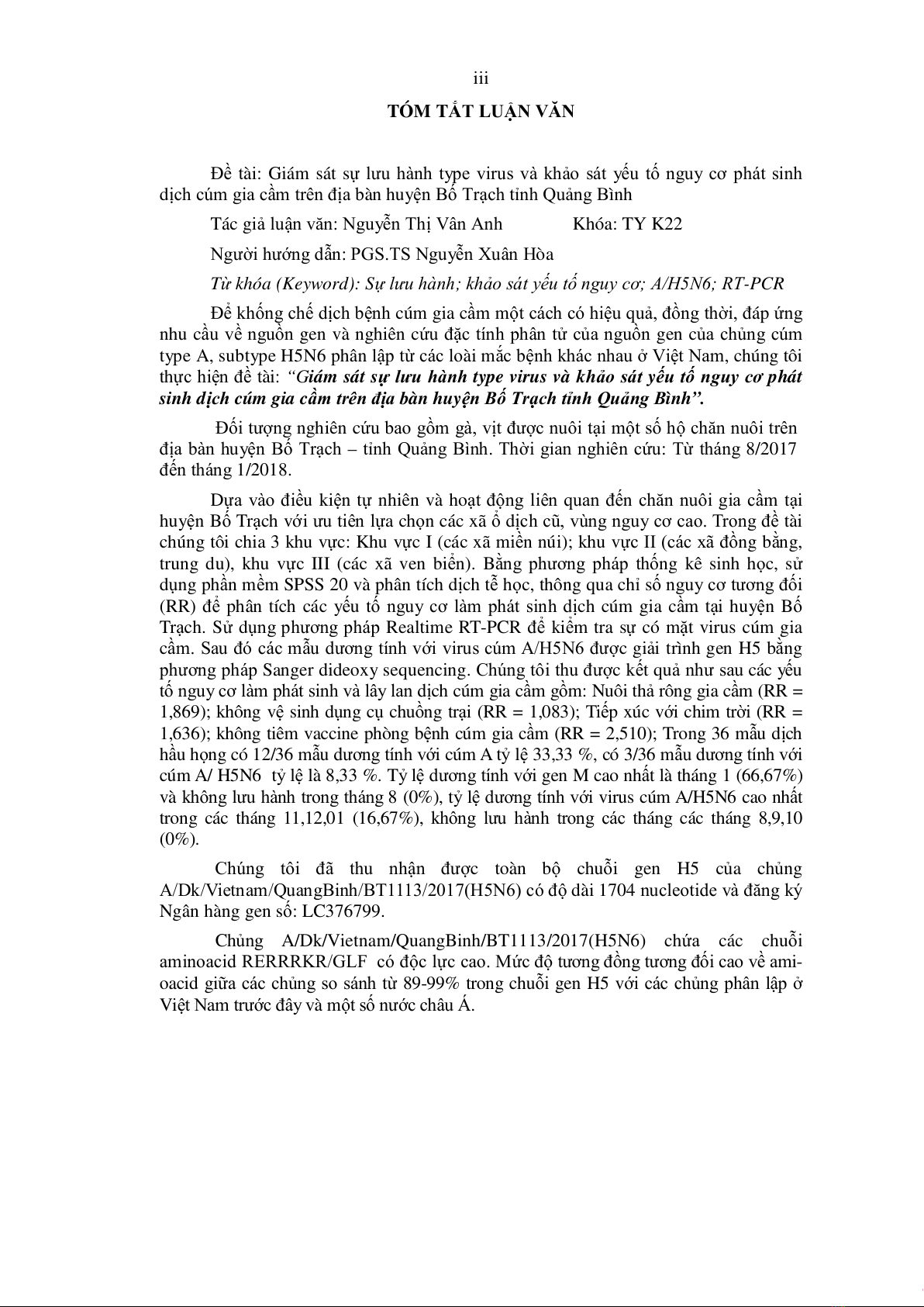 Từ khóa (Keyword): Sự lưu hành; khảo sát yếu tố nguy cơ; A/H5N6; RT-PCR