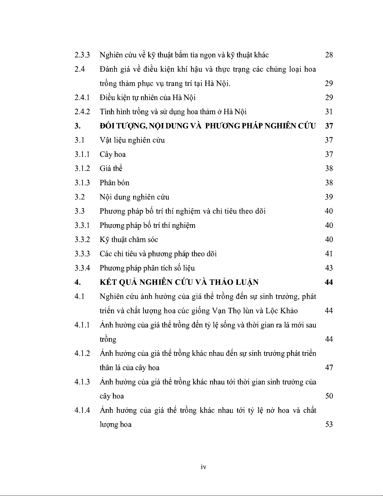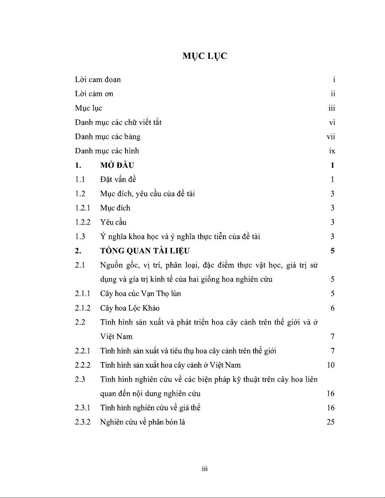 Mục đích của luận văn: Nghiên cứu ảnh hưởng của một số biện pháp kỹ thuật giá thể trồng, phân bón lá, bấm tia ngọn đến sự sinh trưởng, phát triển, chất lượng hoa Vạn Thọ lùn và hoa Lộc Khảo trồng trong túi bầu phục vụ trưng bày và trồng khuôn viên. Trên cơ sở đó đề xuất loại giá thể, phân bón lá cũng như biện pháp bấm tia ngọn thích hợp cho giống hoa nghiên cứu góp phần xây dựng quy trình kỹ thuật cho hoa trồng chậu, hoa trồng khuôn viên tại thủ đô Hà Nội.