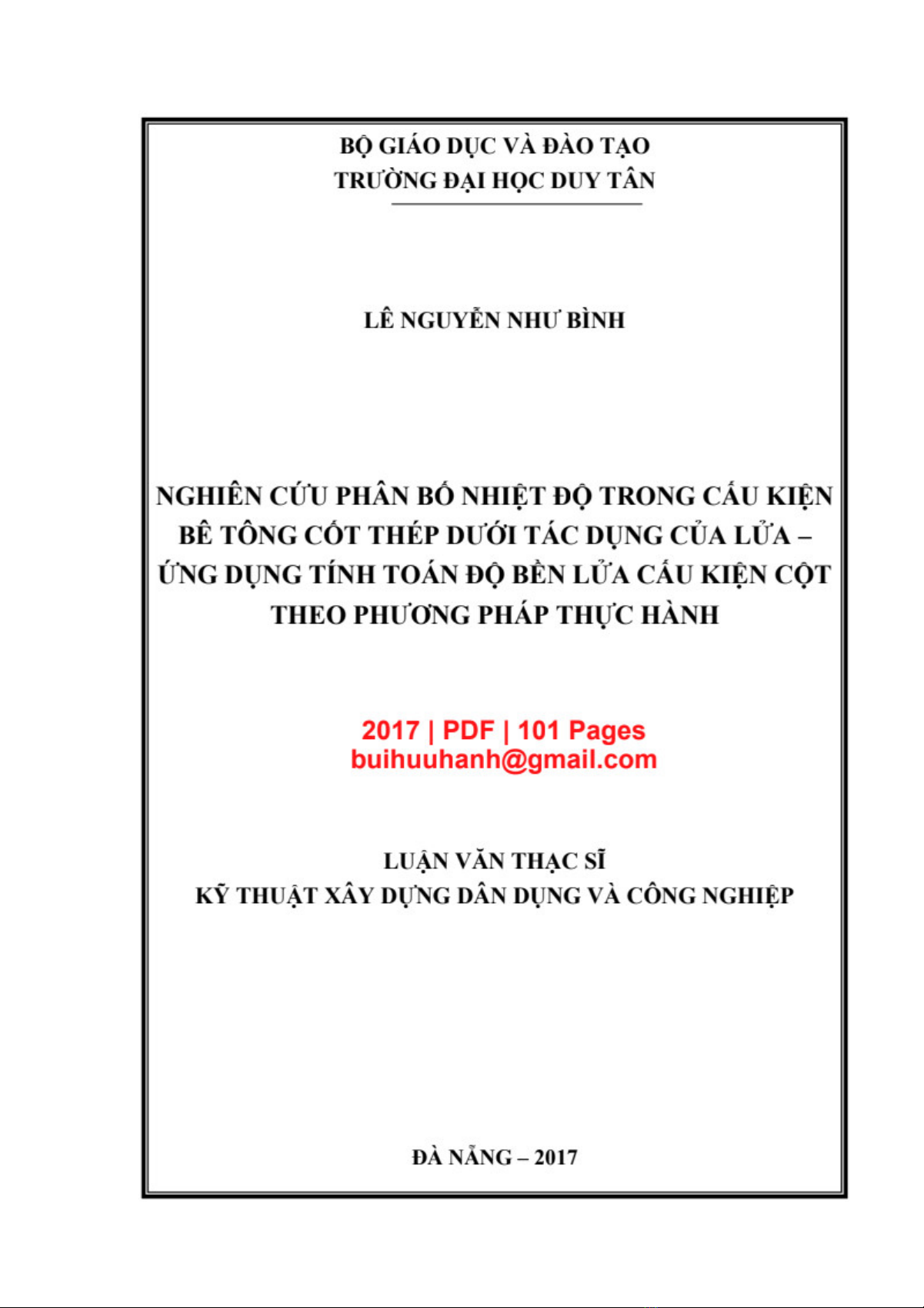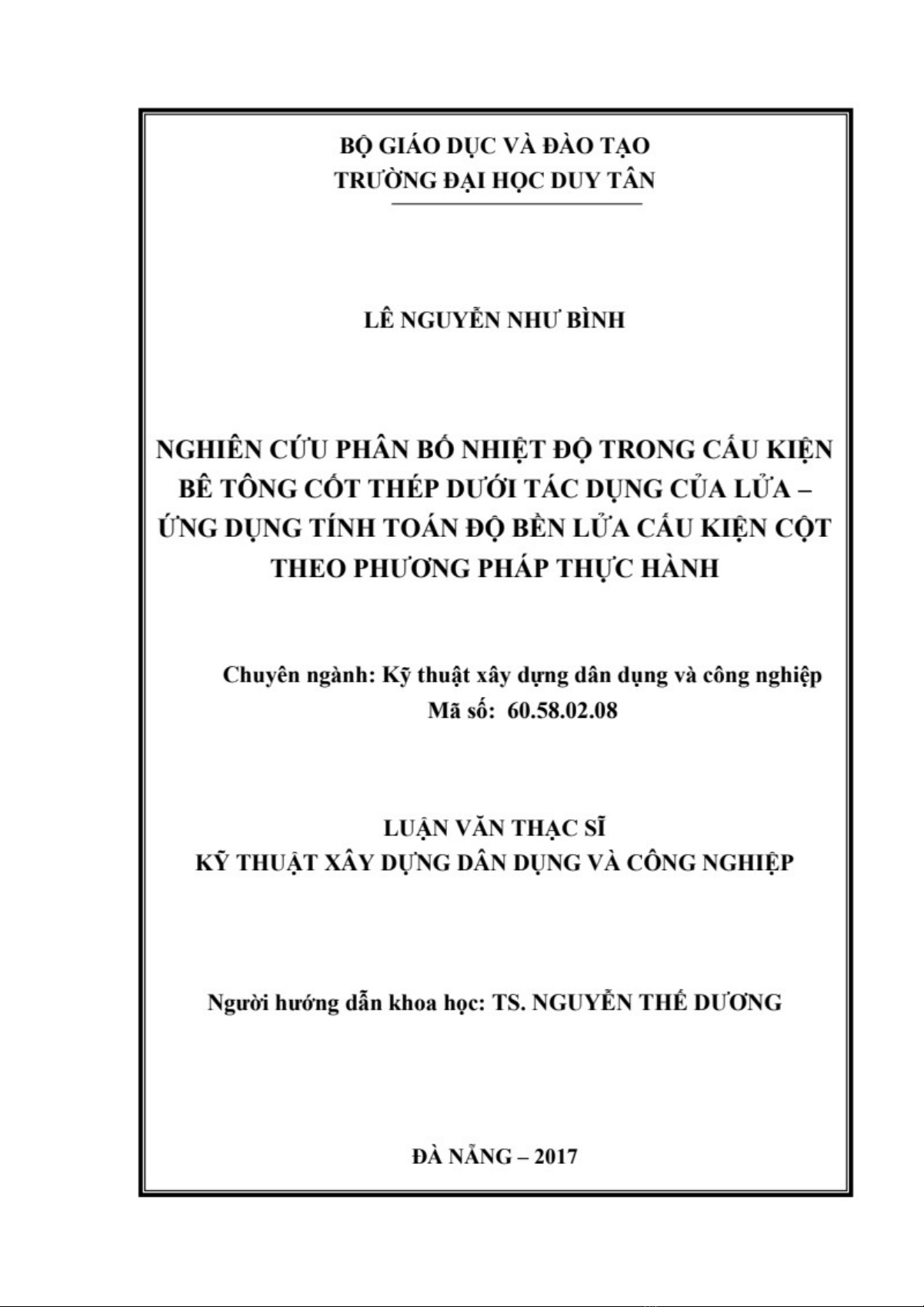 Luận văn nghiên cứu phân bố nhiệt độ trong cấu kiện bê tông cốt thép khi chịu tải trọng hỏa hoạn, sử dụng phương pháp thực hành để thu thập và phân tích số liệu nhiệt độ trên mặt cắt ngang cấu kiện sau khi chịu lửa. Kết quả cho thấy phân bố nhiệt độ có thể được mô hình hóa và tính toán, góp phần vào việc phát triển các giải pháp an toàn cho công trình xây dựng. Nghiên cứu đưa ra rõ đặc tính của khu vực nhiệt độ cao trên mặt cắt ngang cấu kiện, hiểu biết về hình thành và quá trình phân bố nhiệt độ và tính toán khả năng chịu lửa của cấu kiện cột. Nghiên cứu cũng có một số kết quả liên quan đến khả năng tác dụng của lớp đóng góp và đặc trưng của chất liệu cốt thép trong việc giảm nhiệt độ phát sinh trên mặt cắt ngang cấu kiện. Luận văn góp phần vào việc tạo ra các giải pháp an toàn cho công trình xây dựng dân dụng và công nghiệp.