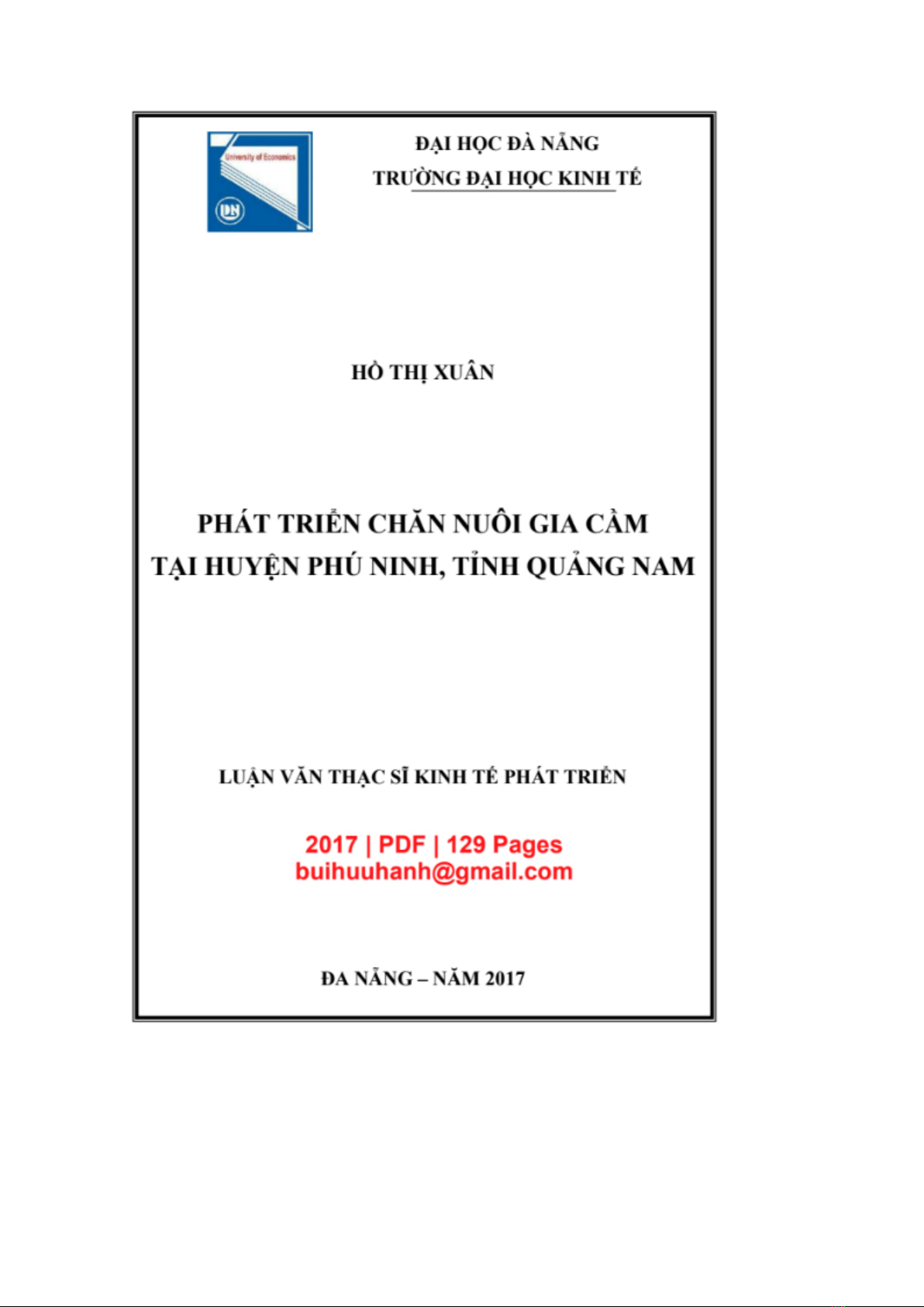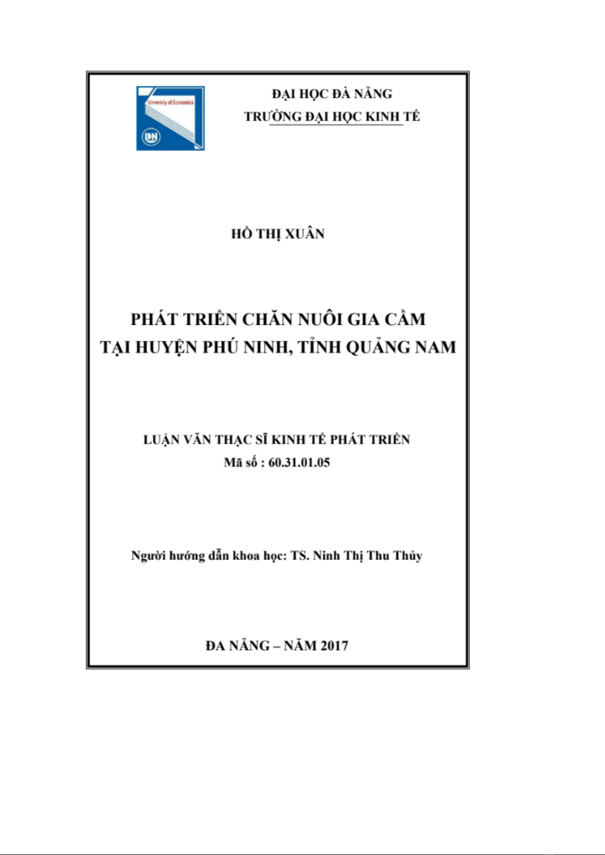 Luận văn Thạc sĩ Kinh tế phát triển: Phát triển chăn nuôi gia cầm tại huyện Phú Ninh, tỉnh Quảng Nam