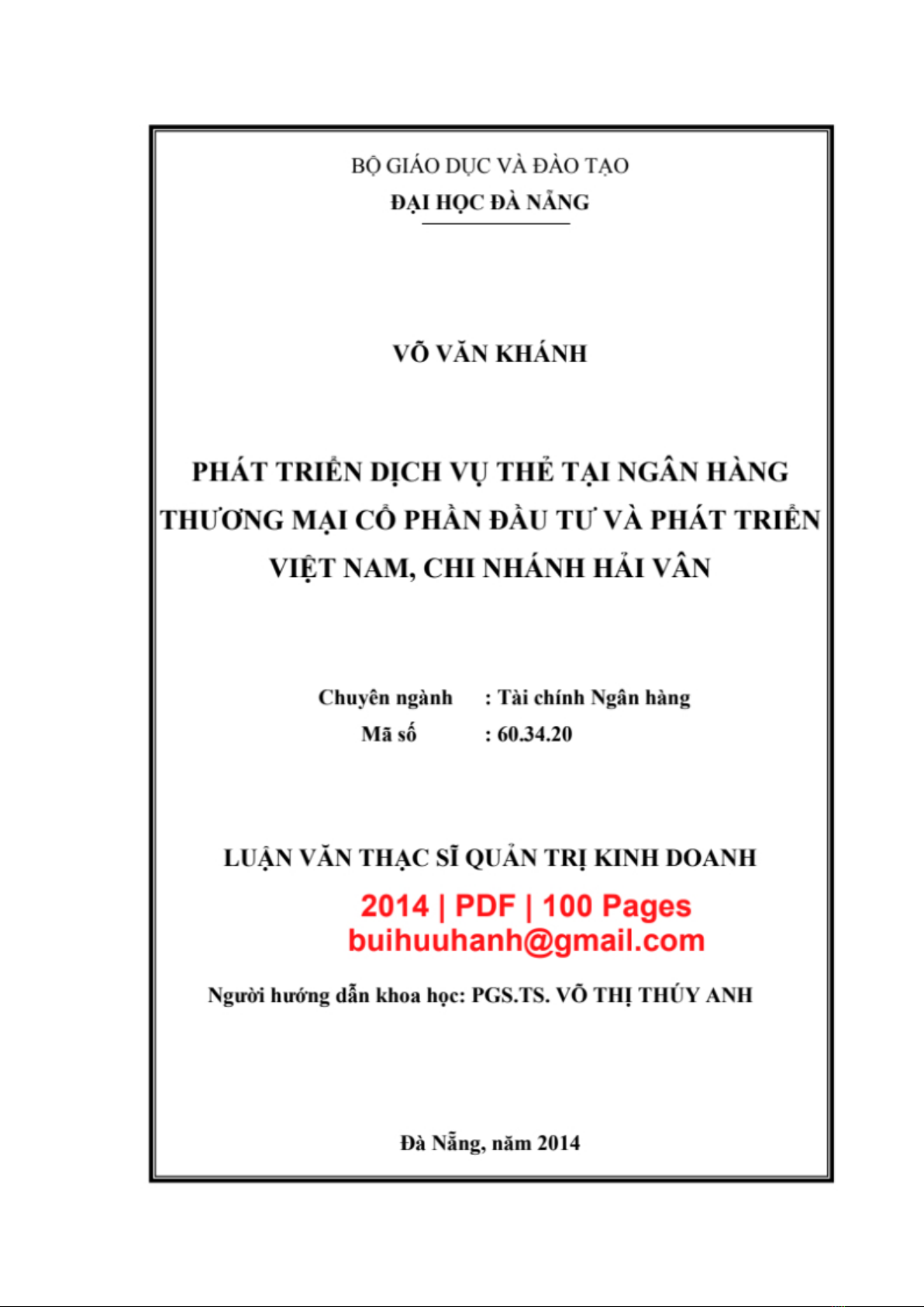 Luận văn 'Phát triển dịch vụ thẻ tại Ngân hàng TMCP Đầu tư và Phát triển Việt Nam – Chi nhánh Hải Vân' là một nghiên cứu hóa cơ sở lý luận về phát triển dịch vụ thẻ tại các ngân hàng thương mại, đánh giá thực trạng phát triển dịch vụ thẻ tại Ngân hàng TMCP Đầu tư và Phát triển Việt nam – Chi nhánh Hải Vân, và đề xuất các giải pháp nhằm phát triển vụ thẻ tại Ngân hàng TMCP Đầu tư và Phát triển Việt nam - Chi nhánh Hải Vân. Nghiên cứu này có thể dùng làm tài liệu tham khảo cho các nghiên cứu tương lai trong lĩnh vực ngân hàng và kinh doanh.