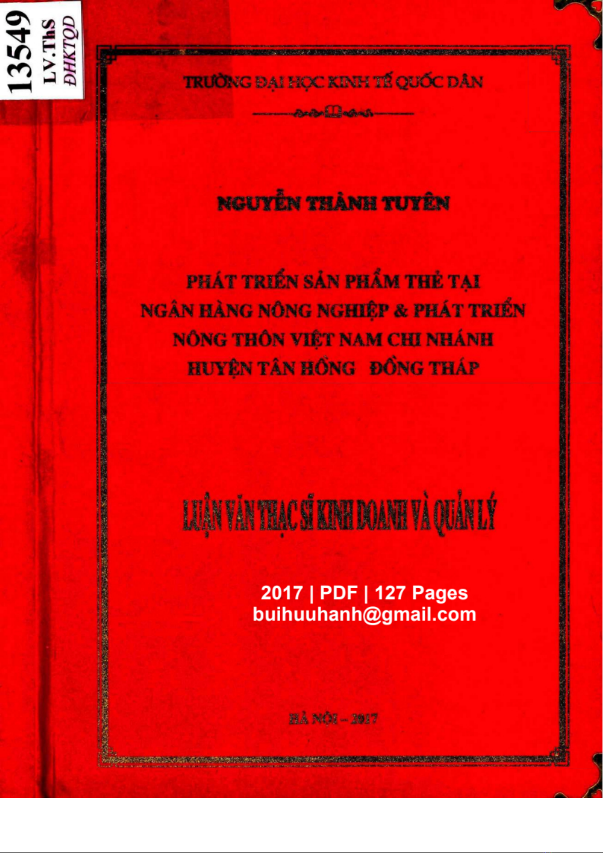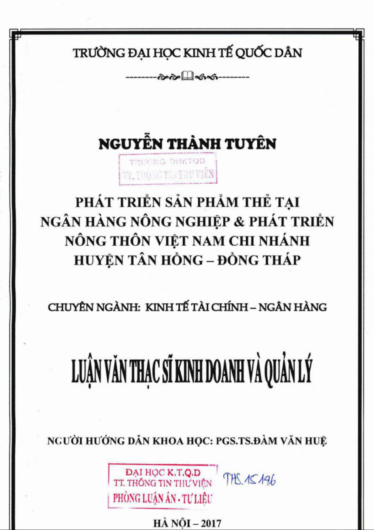 Luận văn thạc sĩ Tài chính ngân hàng: Phát triển sản phẩm thẻ tại Ngân hàng Nông nghiệp và Phát triển nông thôn Việt Nam chi nhánh huyện Tân Hồng - Đồng Tháp