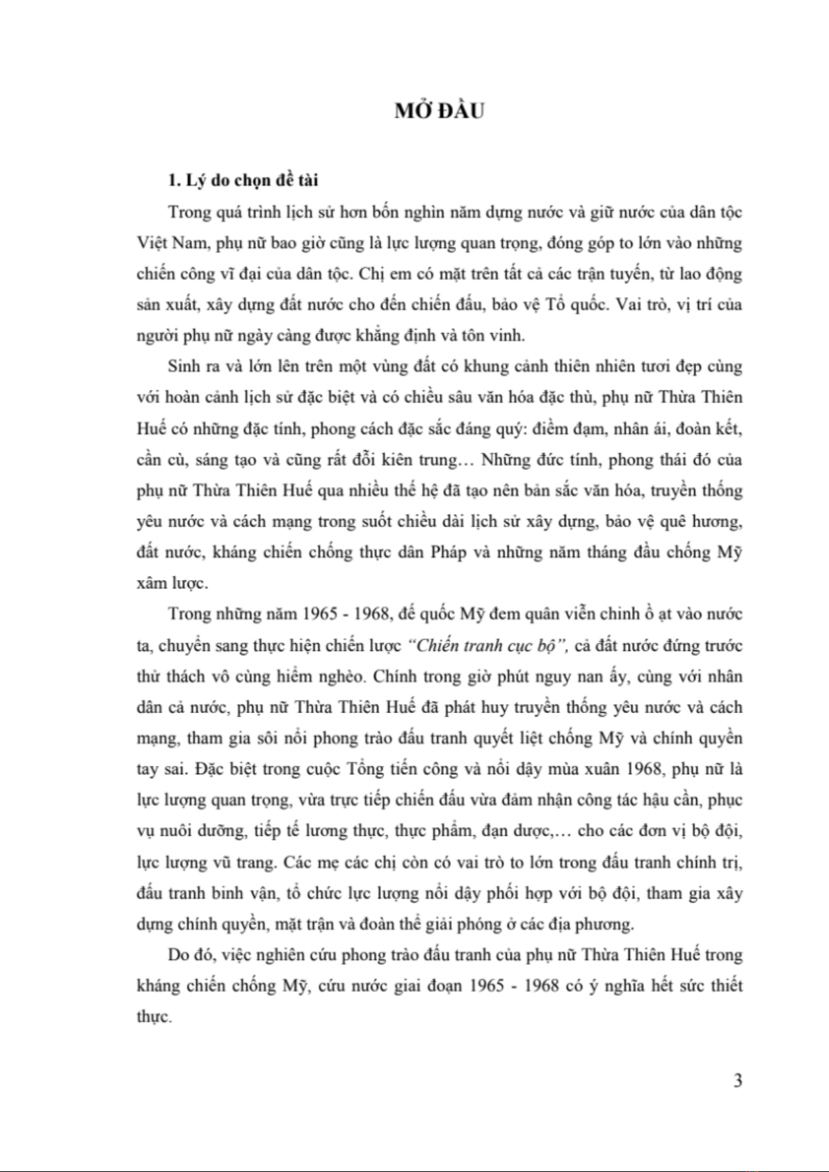 Đề tài "Phụ nữ Thừa Thiên Huế trong cuộc kháng chiến chống Mỹ, cứu nước giai đoạn 1965-1968" là công trình có hệ thống, tương đối đầy đủ về phong trào đấu tranh của phụ nữ Thừa Thiên Huế trong cuộc kháng chiến chống Mỹ cứu nước giai đoạn 1965-1968, góp phần minh chứng cho truyền thống yêu nước và cách mạng hào hùng của nhân dân Thừa Thiên Huế nói chung và phụ nữ Thừa Thiên Huế nói riêng.