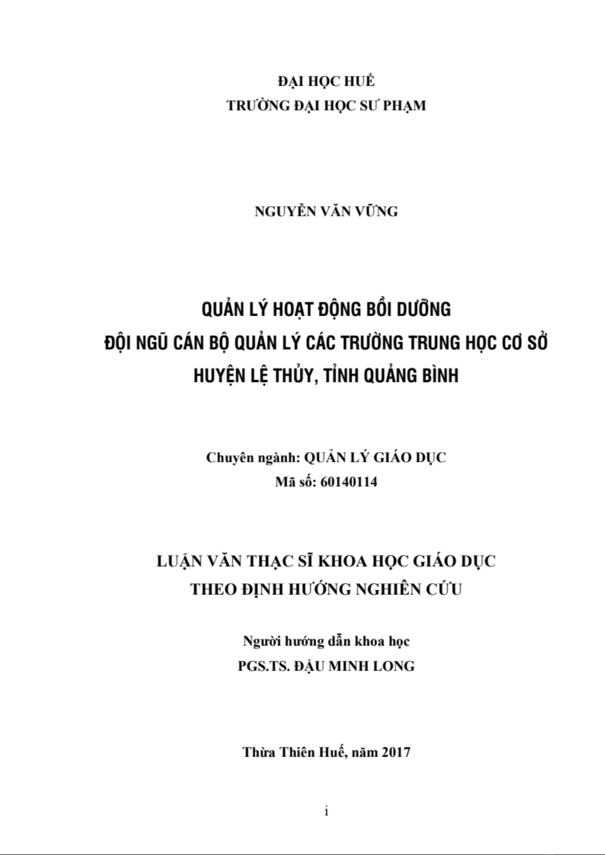 Trên cơ sở nghiên cứu lý luận và khảo sát, đánh giá thực trạng quản lý hoạt động bồi dưỡng cán bộ quản lý các trường trung học cơ sở huyện lệ Thủy, tỉnh Quảng Bình, đề tài "Quản lý hoạt động bồi dưỡng đội ngũ cán bộ quản lý các trường trung học cơ sở huyện Lệ Thủy, tỉnh Quảng Bình" đề xuất biện pháp quản lý hoạt động bồi dưỡng đội ngũ cán bộ quản lý ở các trường trung học cơ sở huyện lệ Thủy, tỉnh Quảng Bình nhằm góp phần nâng cao chất lượng đội ngũ cán bộ quản lý trong giai đoạn hiện nay.