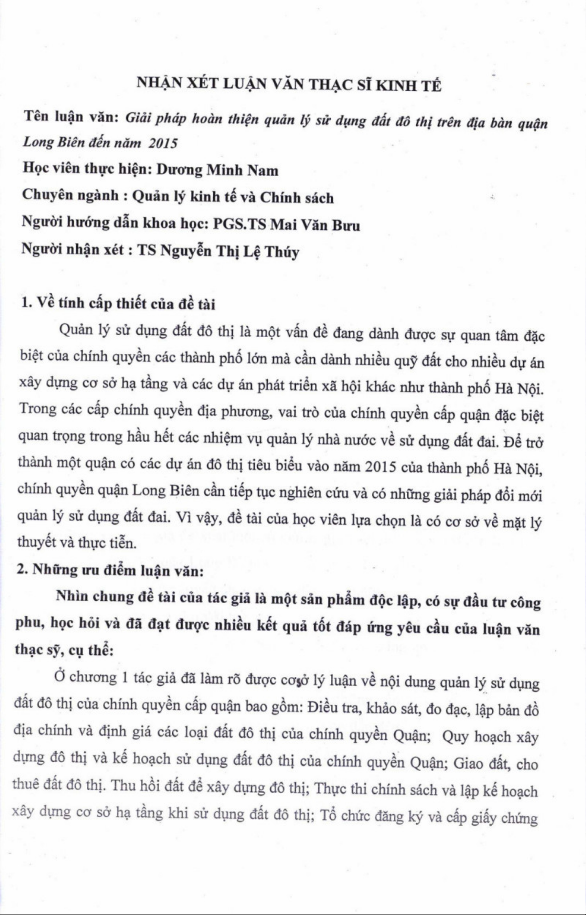 Lựa khoa học Luận văn Thạc sĩ Kinh doanh và quản lý: Giải pháo hoàn thiện quản lý sử dụng đất đô thị trên địa bàn quận Long Biên đến năm 2015 là một cứu trú chính quyền Quận trong việc quản lý sử dụng đất đô thị, phân tích và giải pháp quan trọng cho khu vực Long Biên và Thành phố Hà Nội.