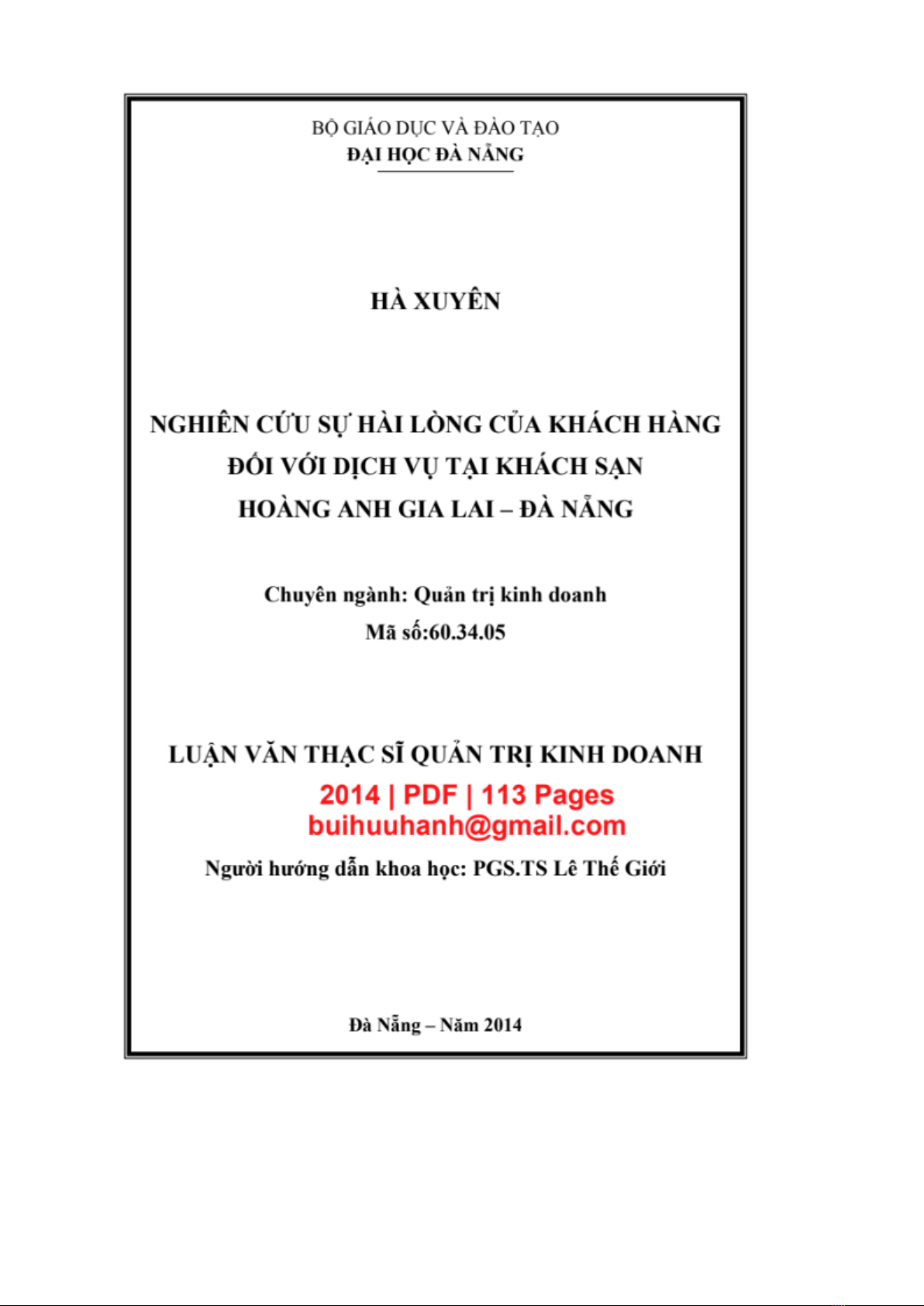 Luận văn Thạc sĩ Quản trị kinh doanh: Nghiên cứu sự hài lòng của khách hàng đối với dịch vụ tại khách sạn Hoàng Anh Gia Lai – Đà Nẵng