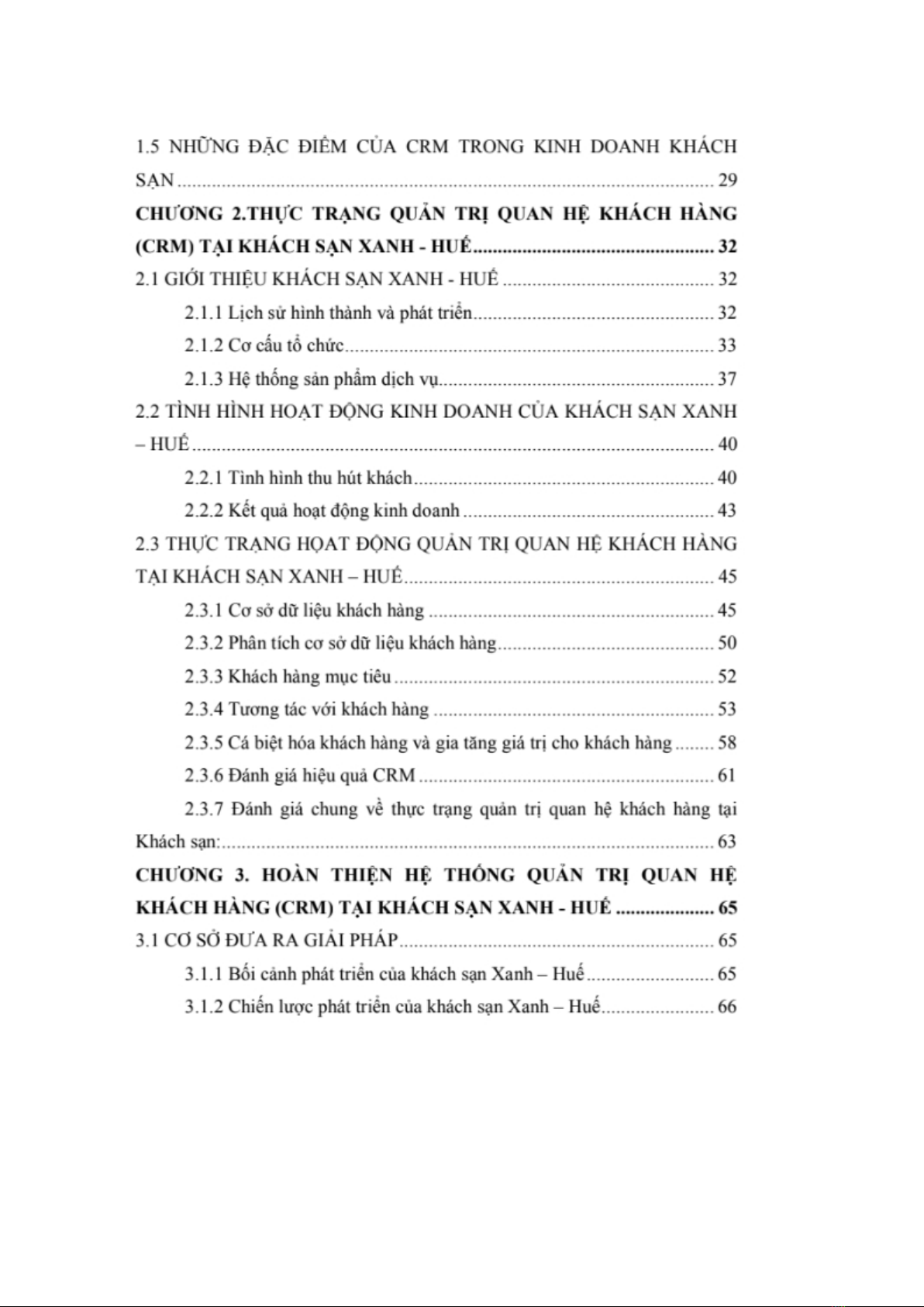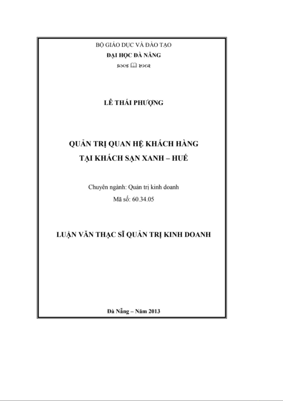 Luận văn Thạc sĩ Quản trị kinh doanh: Quản trị quan hệ khách hàng tại khách sạn xanh - Huế