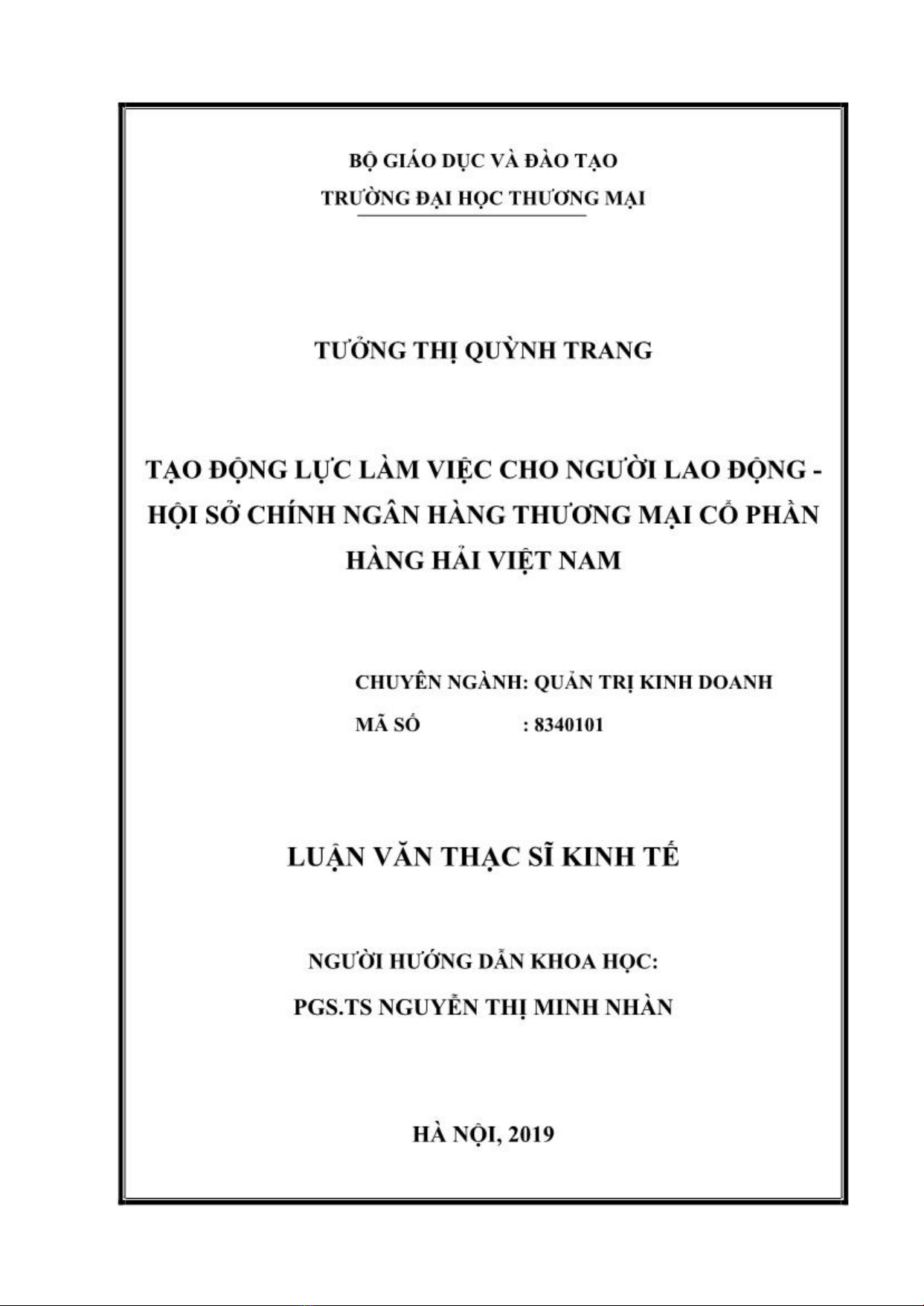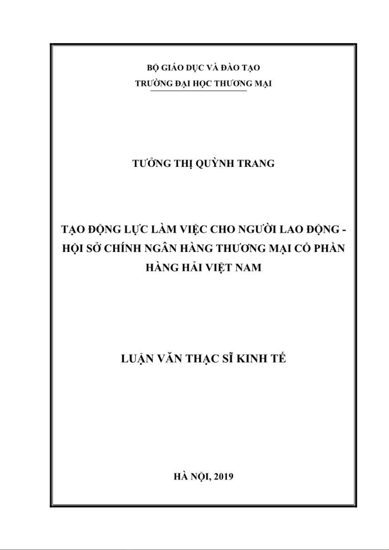 Luận văn Thạc sĩ Kinh tế: Tạo động lực làm việc cho người lao động - Hội sở chính Ngân hàng Thương mại Cổ phần Hàng hải Việt Nam