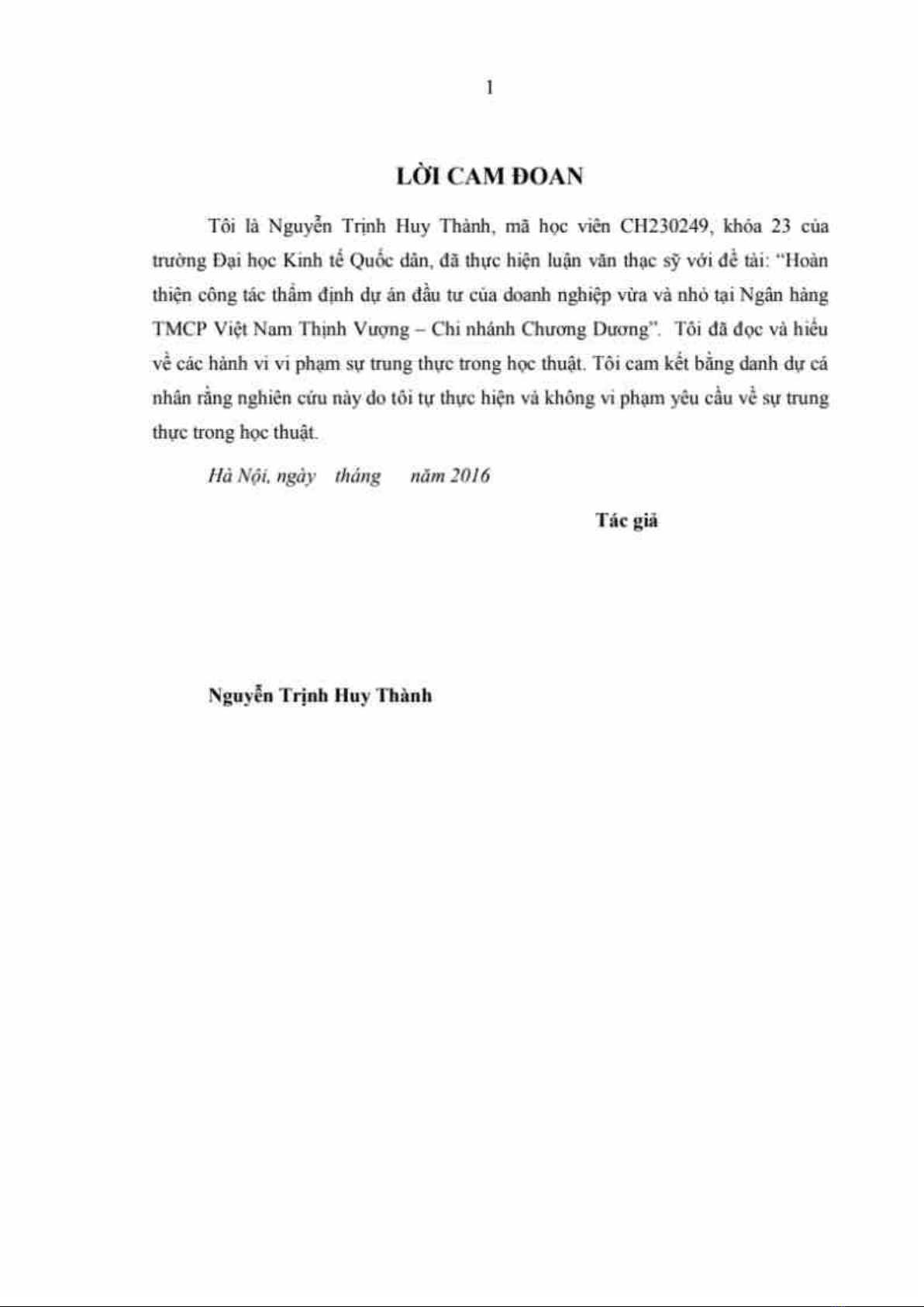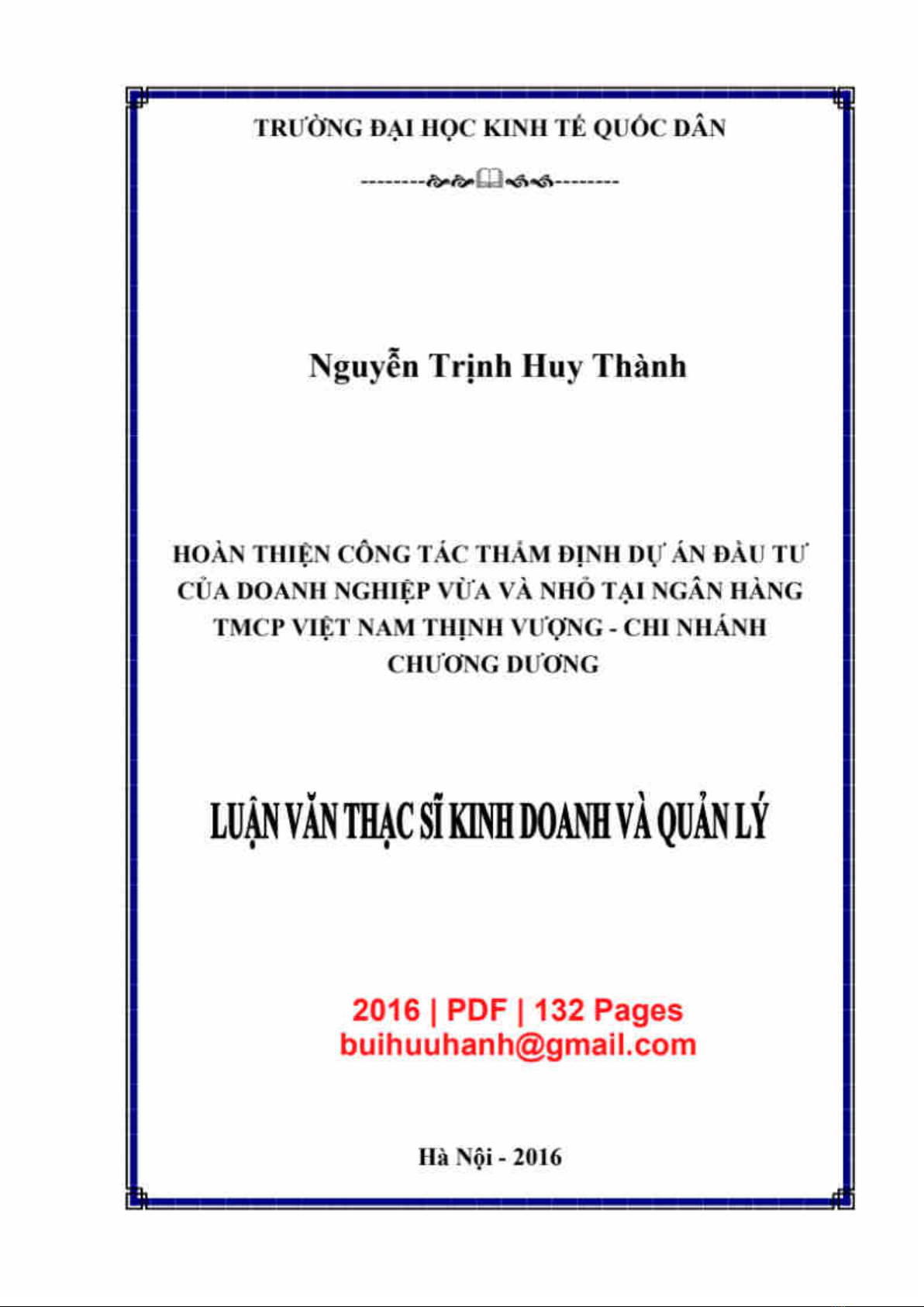 Luận văn nghiên cứu Kinh doanh và quản lý: Hoàn thiện công tác thẩm định dự án đầu tư của Doanh nghiệp vừa và nhỏ tại Ngân hàng TMCP Việt Nam Thịnh Vượng - Chi nhánh Chương Dương là một nghiên cứu khoa học về việc hoàn thiện quá trình đánh giá và phê duyệt dự án đầu tư của các doanh nghiệp vừa và nhỏ tại ngân hàng Thương mại. Luận văn này giới thiệu tổng quát đề tài, những vấn đề lý luận của công tác này, trạng thái hiện tại của việc thẩm định dự án đầu tư của VPBank chi nhánh Chương Dương giai đoạn 2011-2015, và các giải pháp khắc phục cho việc hoàn thiện công tác này. Luận văn này có trọng yếu trong việc phát triển kinh tế và tăng cường vai trò của ngân hàng thương mại trong nền kinh tế.