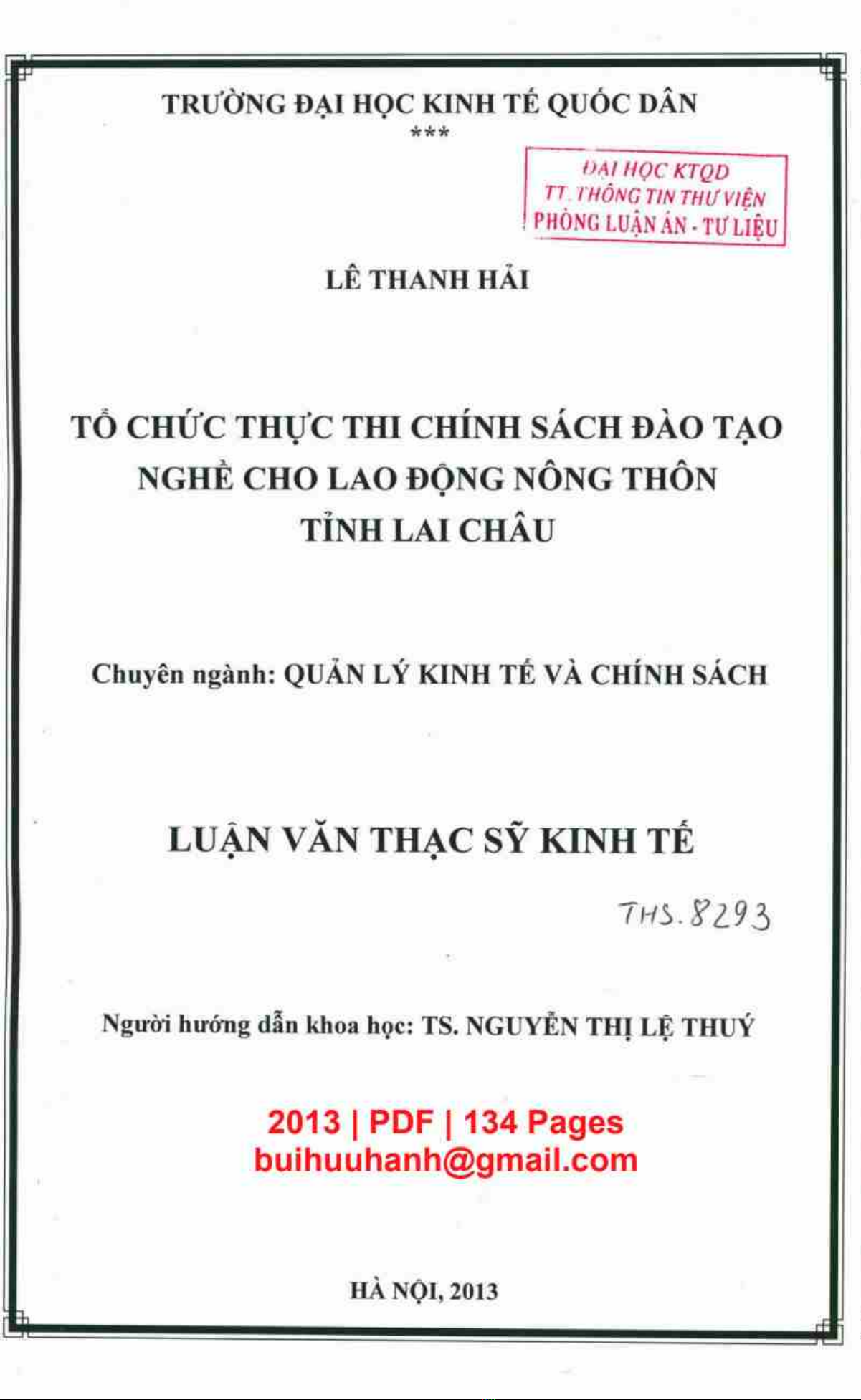 Luận văn Thạc sĩ Kinh doanh và quản lý: Tổ chức thực thi chính sách đào tạo nghề cho lao động nông thôn tỉnh Lai Châu