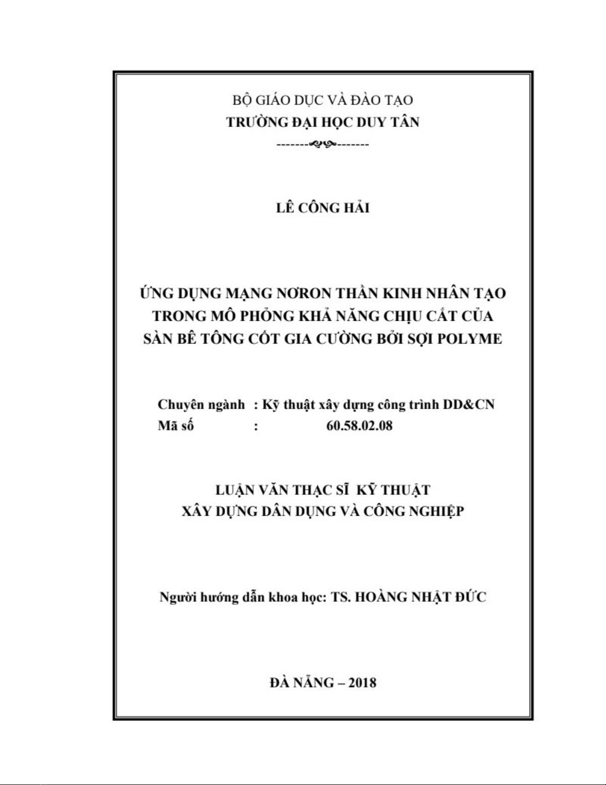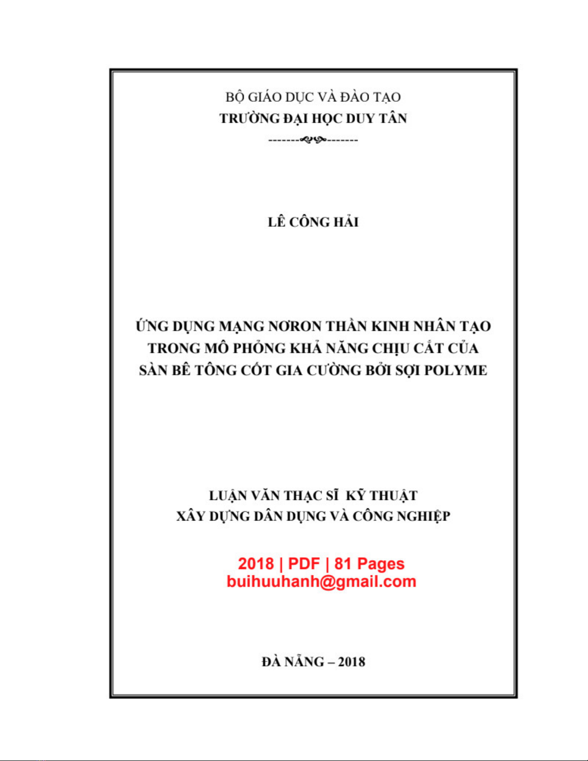 Luận văn 'Ứng dụng mạng Nơ ron thần kinh nhân tạo trong mô phỏng khả năng chịu cắt của sàn bê tông gia cường bởi sợi Polyme' trình bày về kết cấu bê tông gia cường bằng sợi Polyme, một loại vật liệu được sử dụng rộng rãi trong ngành xây dựng. Tác giả của luận văn đề cập đến việc sử dụng mạng Nơ ron thần kinh nhân tạo (ANN) để phân tích dữ liệu về tấm bê tông gia cường FRP. Họ cũng giới thiệu một số kết quả kiểm chứng cho việc sử dụng ANN này có thể tăng cường khả năng chịu cắt của sàn bê tông gia cường. Luận văn này có thể quan trọng cho người theo dõi khoa học và công nghệ xây dựng.