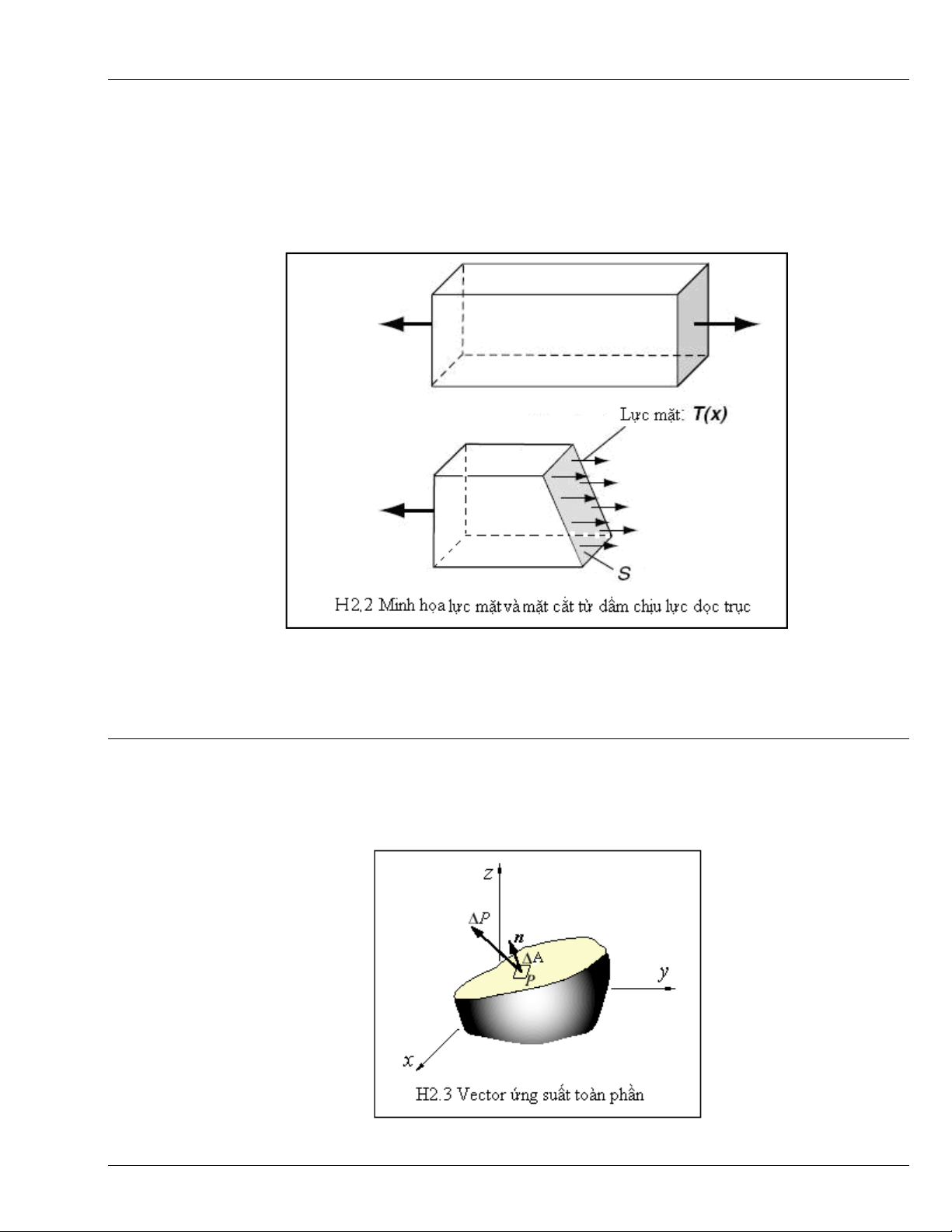 Hình H2.2 biểu diễn lực mặt tác dụng lên mặt cắt tưởng tượng, cắt dầm khảo sát ra làm hai phần.