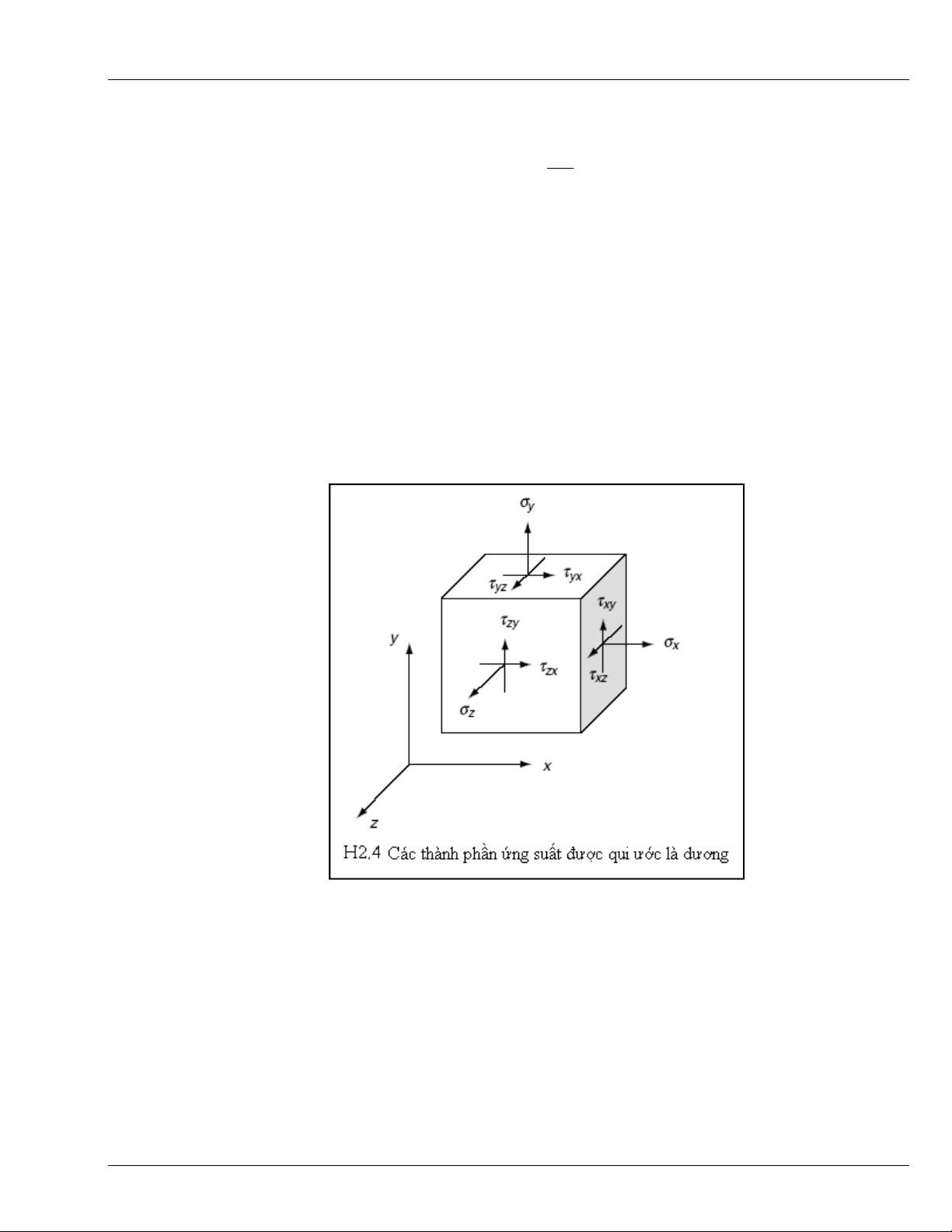 Trên hình vẽ H2.4 biểu diễn các thành phần ứng suất được qui ước là dương (trên các mặt có pháp