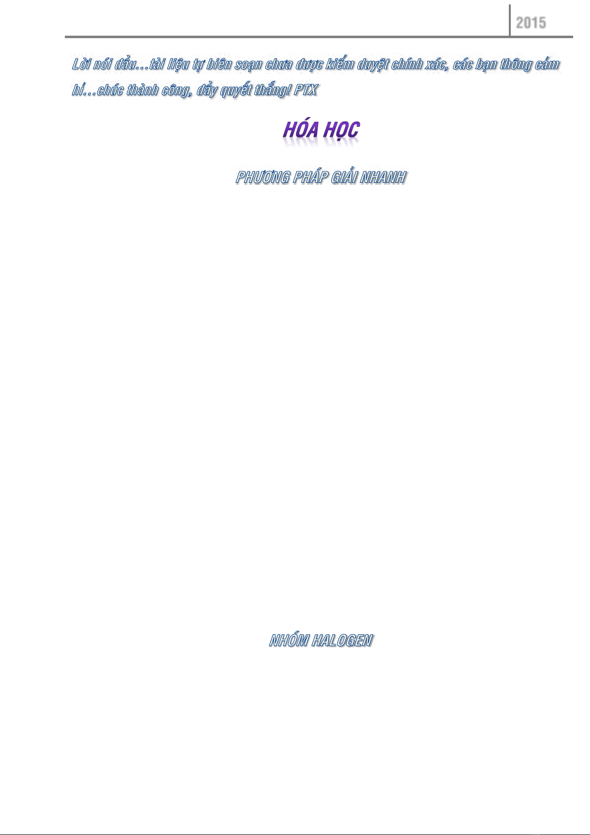 Phæång phaïp giaíi nhanh hoïa hoüc: Theo kinh nghiãûm thç âãø giaíi nhanh âæåüc baìi toaïn hoïa hoüc,