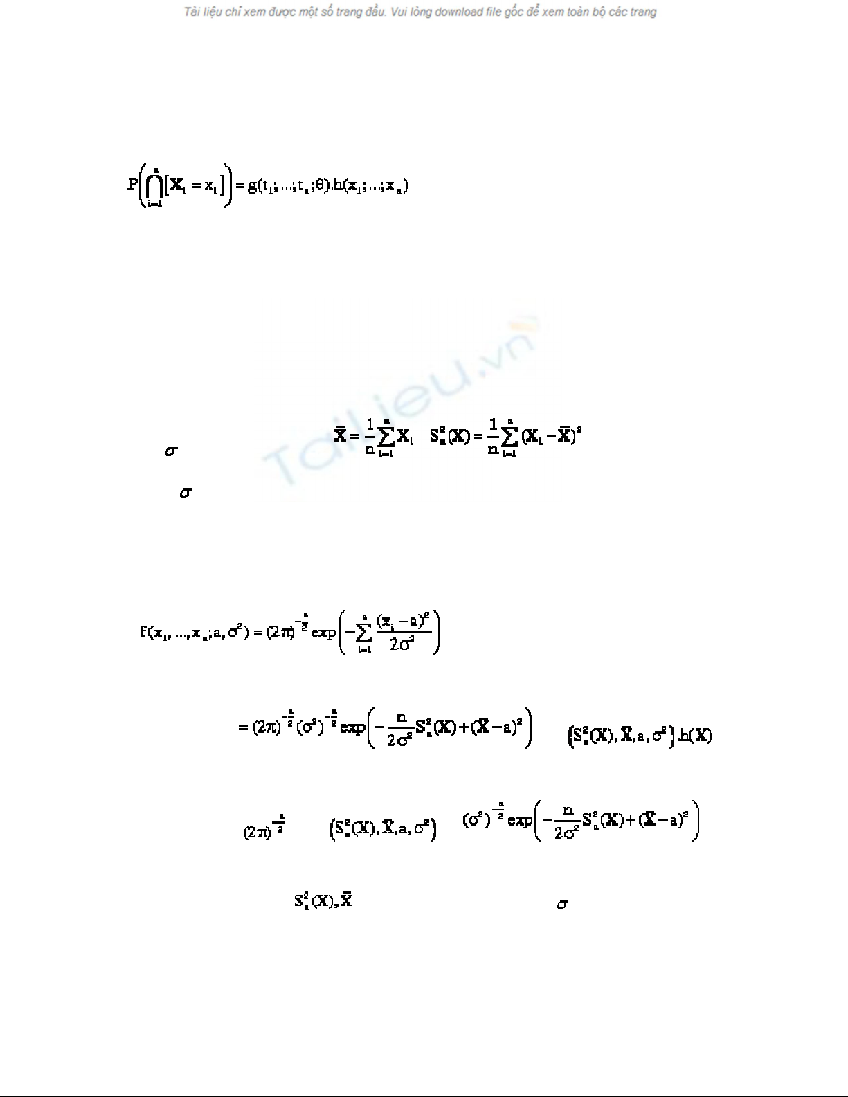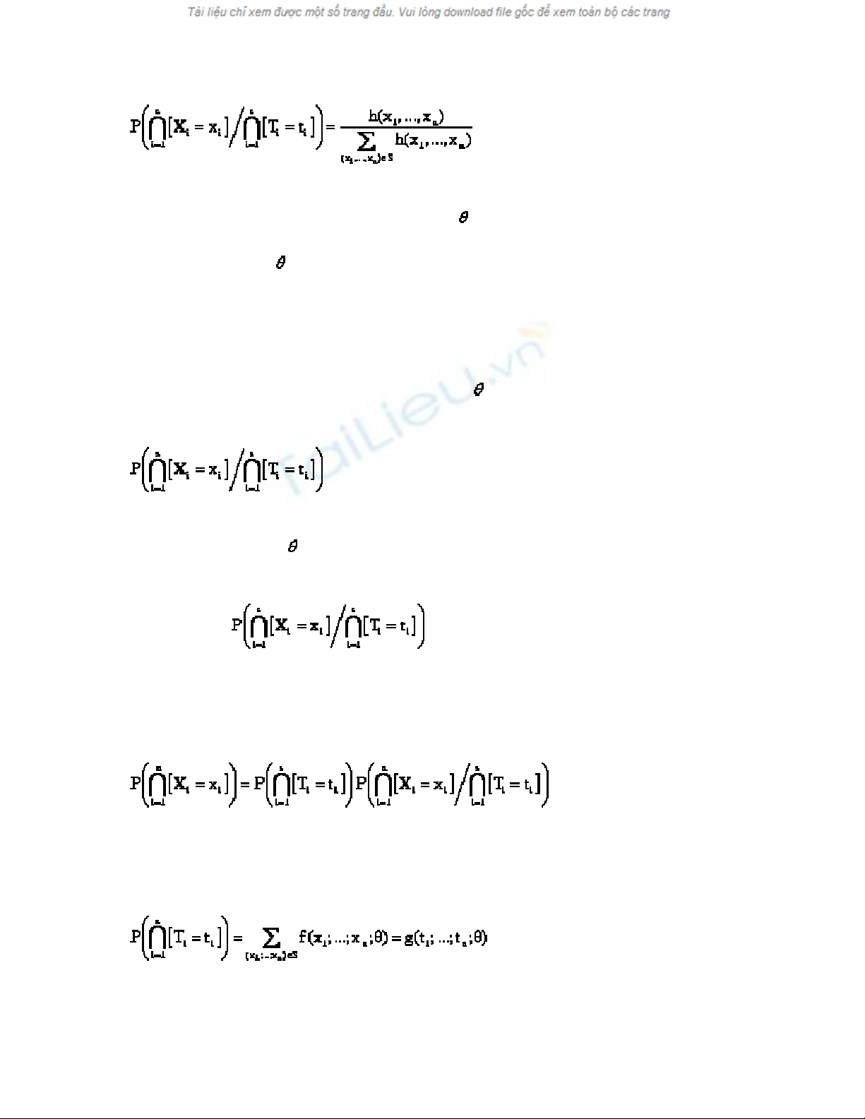 Xác suất điều kiện này không phụ thuộc vào . Vậy T(X) = (T1(X),…, Ts(X)) là