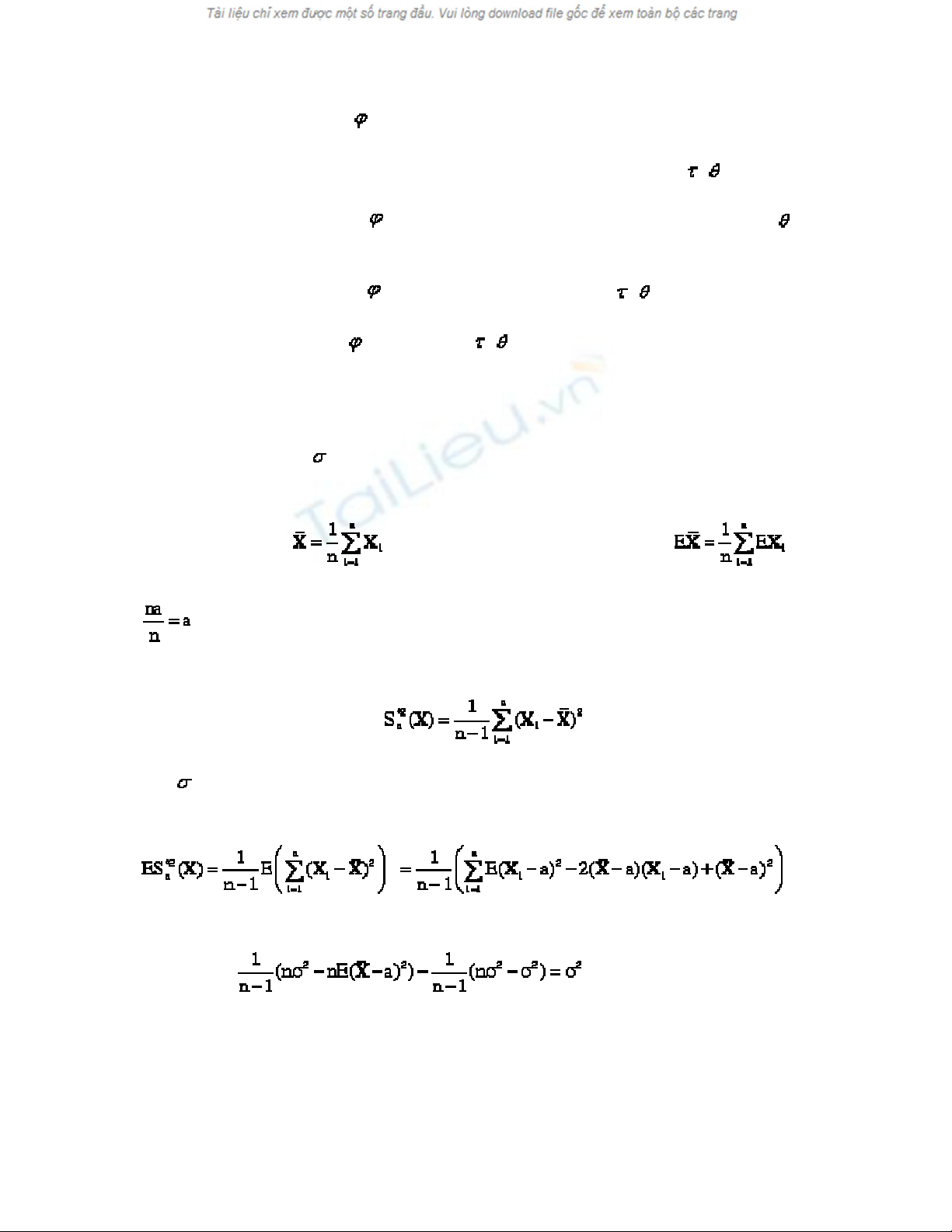 * Trung bình mẫu là ước lượng không chệch của a vì =