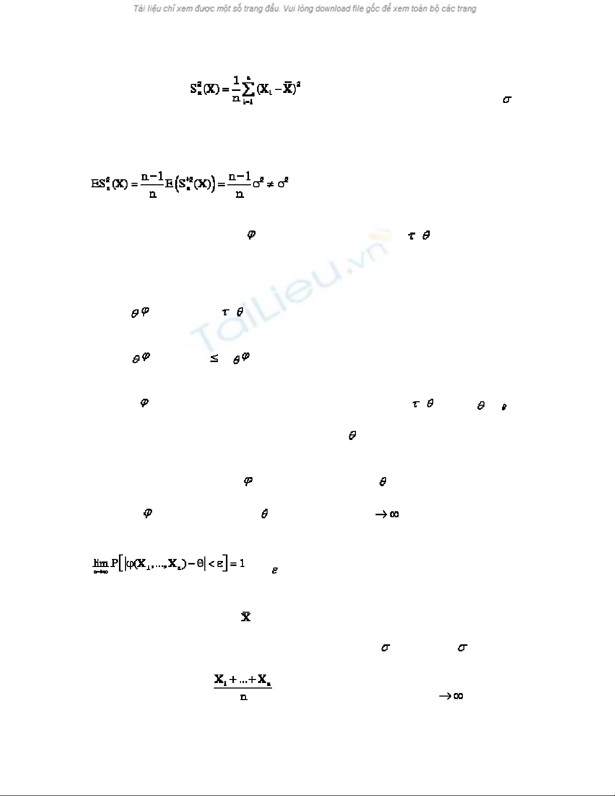 định nghĩa của thống kê thì (X) chỉ phụ thuộc X1,…, Xn mà không phụ thuộc ).