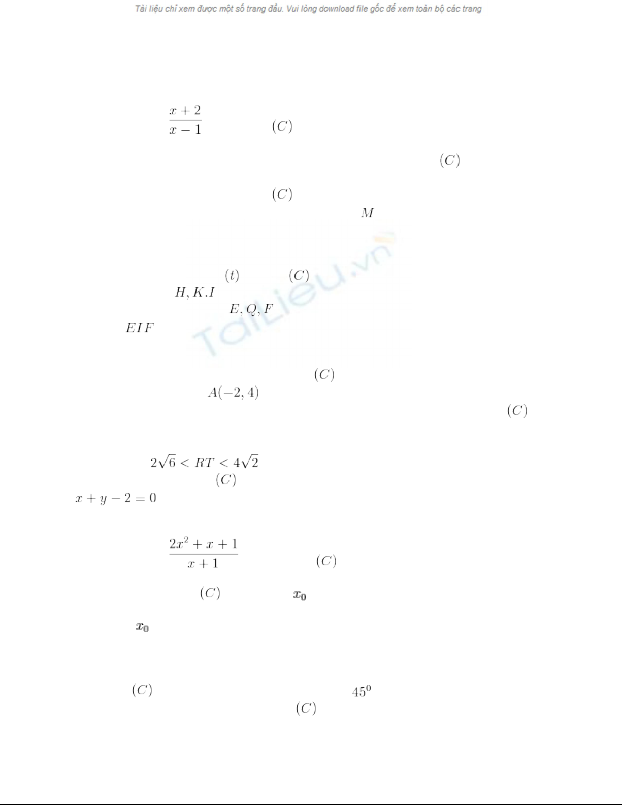 b. là 2 đt lần lƣợt qua I có hệ số góc là .Tìm nguyên để cắt