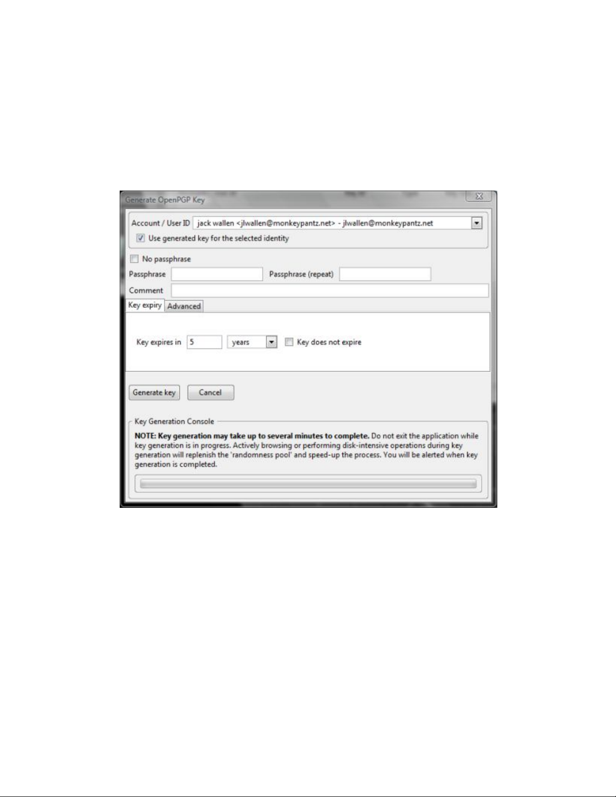 một cửa sổ mới (xem trong hình A), ở đây bạn có thể tạo cặp khóa cho mình.