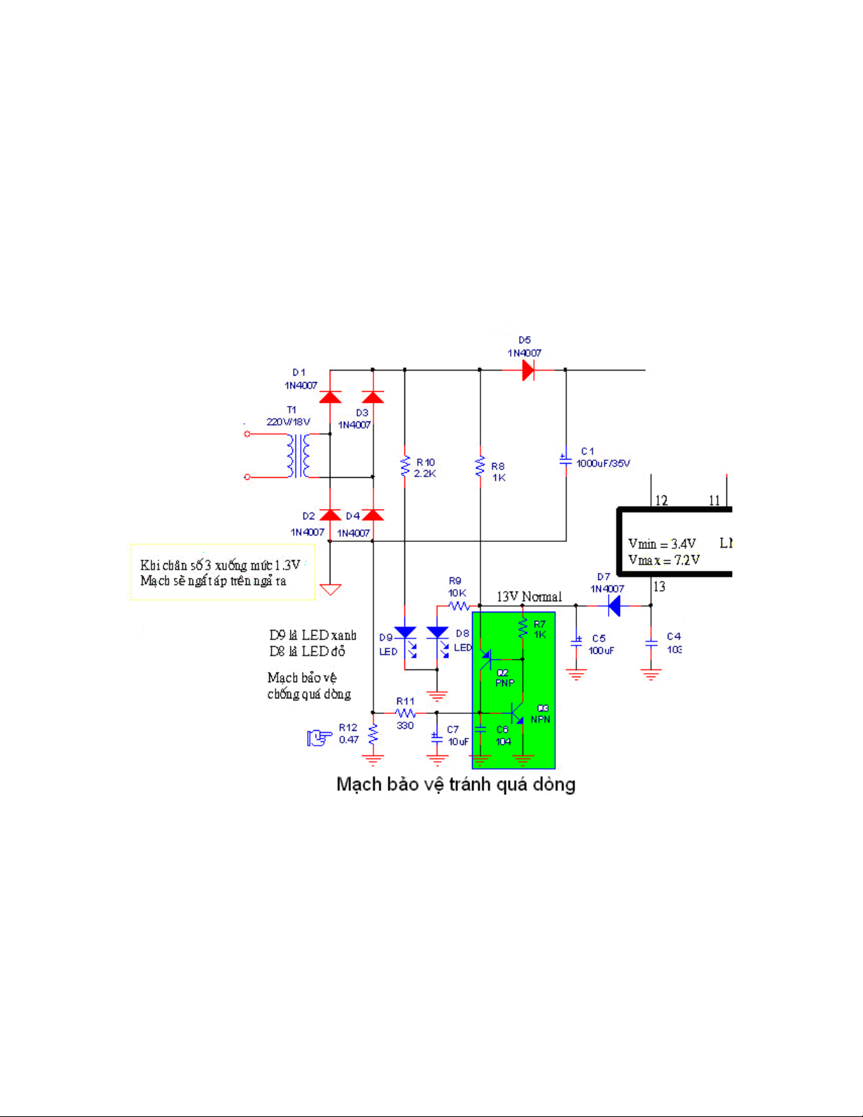* Khi m ch t i b quá dòng, dòng t i cao h n 1A, lúc này m c áp trên R12 lênạ ả ị ả ơ ứ