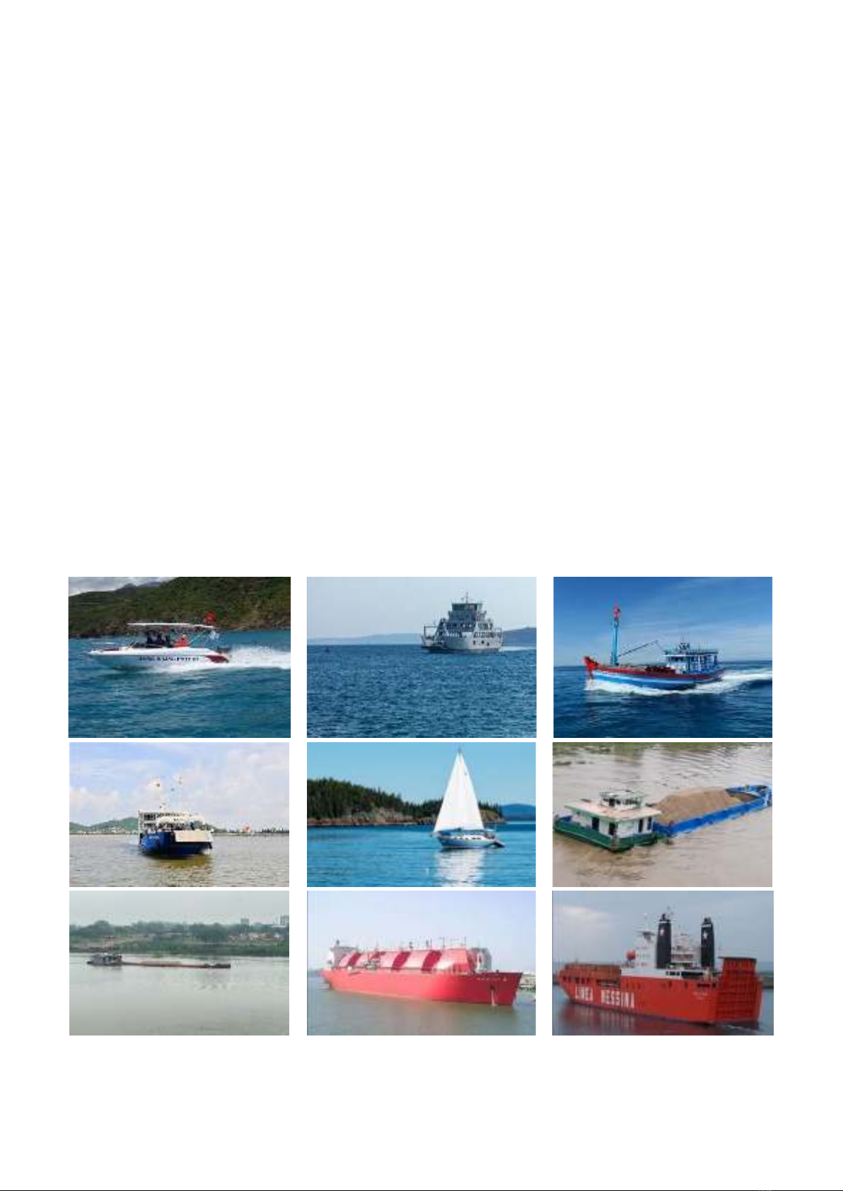 container ships, passenger vessels, barges, ferries, canoes, fishing boats, and