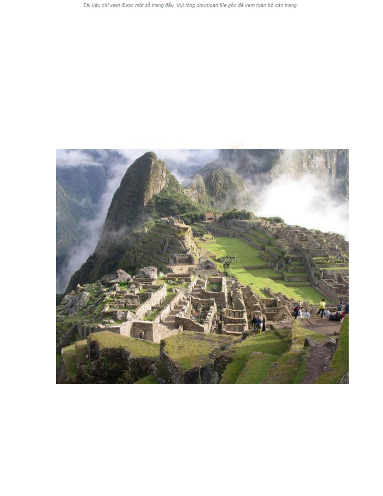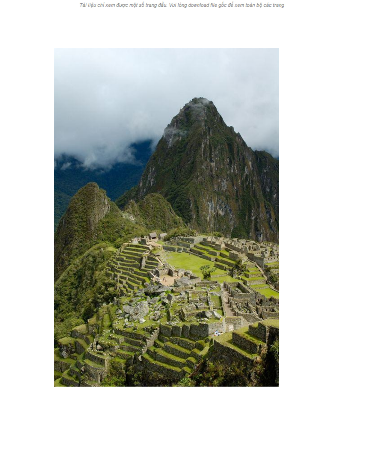 Machu Picchu là khu tàn tích Inca thời tiền Columbo nằm ở độ cao 2.430m.