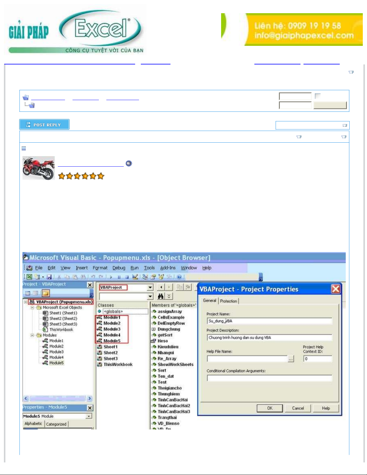 không hiện ra (hình vẽ 33). Để xem được nội dung code, bạn nháy kép vào Su_dung_VBA Project, cửa sổ