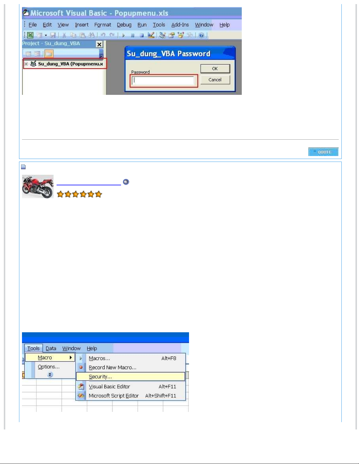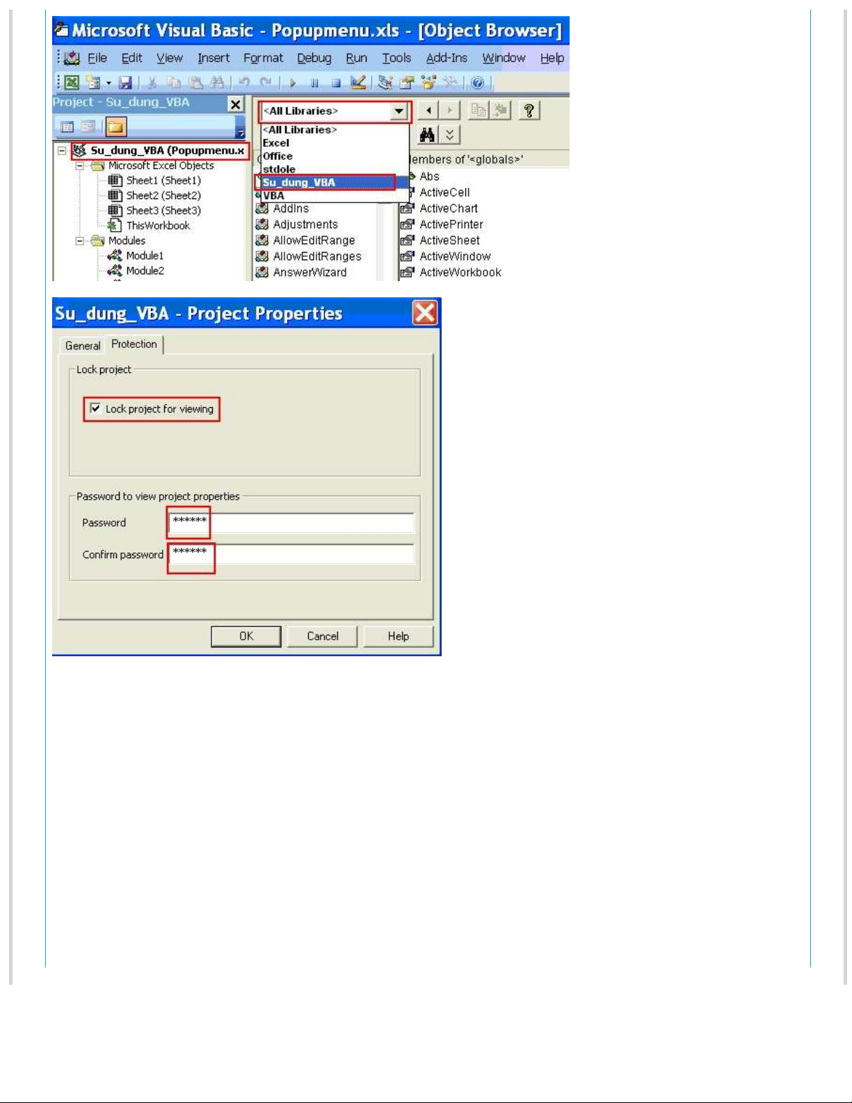 bằng cách gõ lại nội dung mã khoá vừa vào. Nếu bạn gõ không đúng nội dung, VBA sẽ báo lỗi và bạn phải