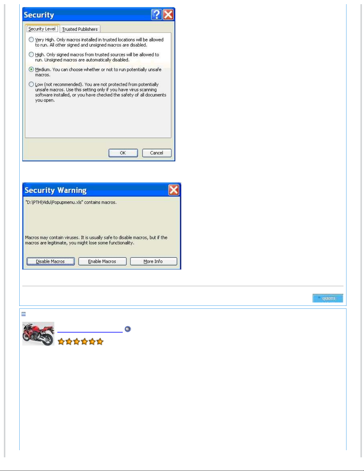 dụng. Chức năng Security điều khiển sự làm việc của macro, tức là có thể cho hoạt động hoặc không.
