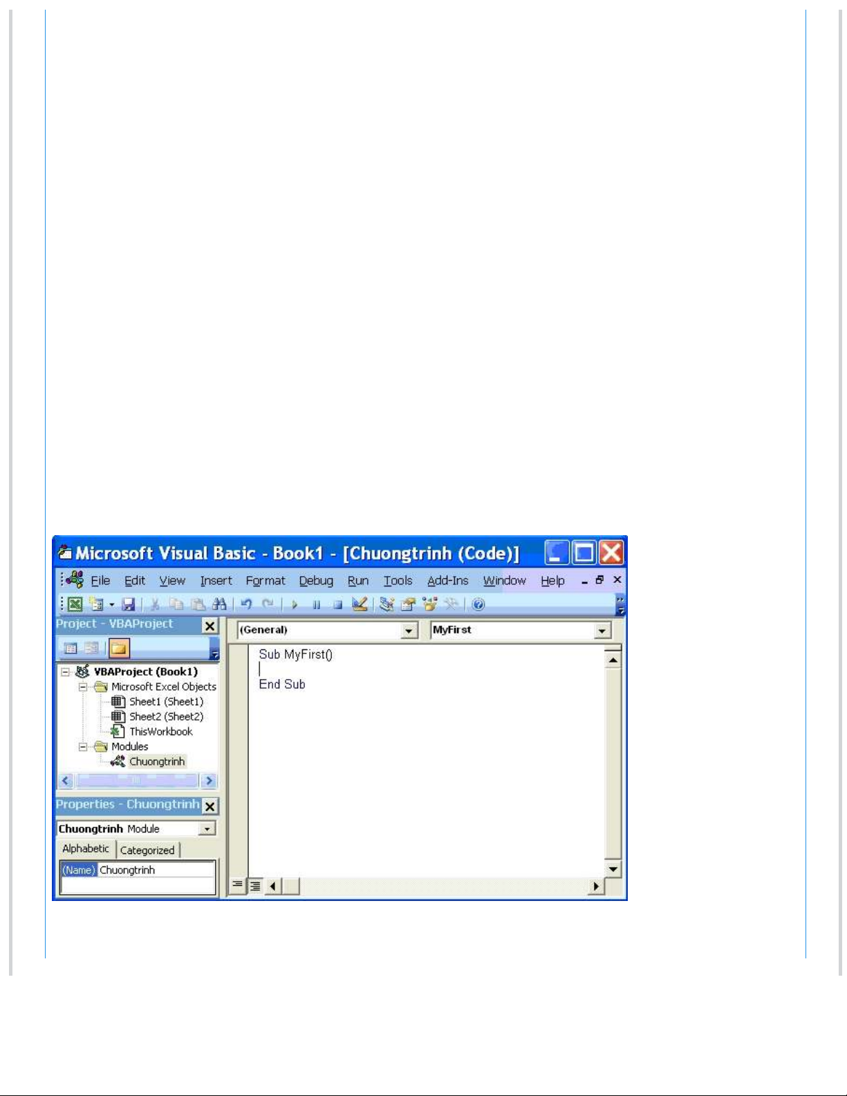 trong module được hiện ra trong IDE thay thế cho bảng tính trong workbook (như Excel đời trước 97).