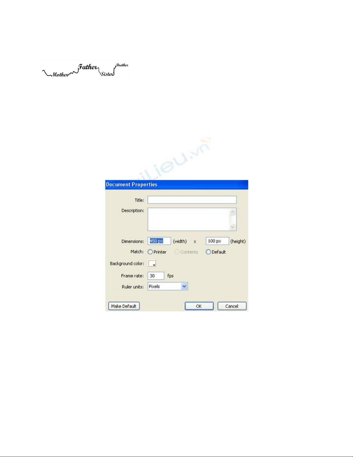 Chọn Modify > Document (phím tắt Ctrl + J). Thiết lập độ rộng của file là 450 pixel và