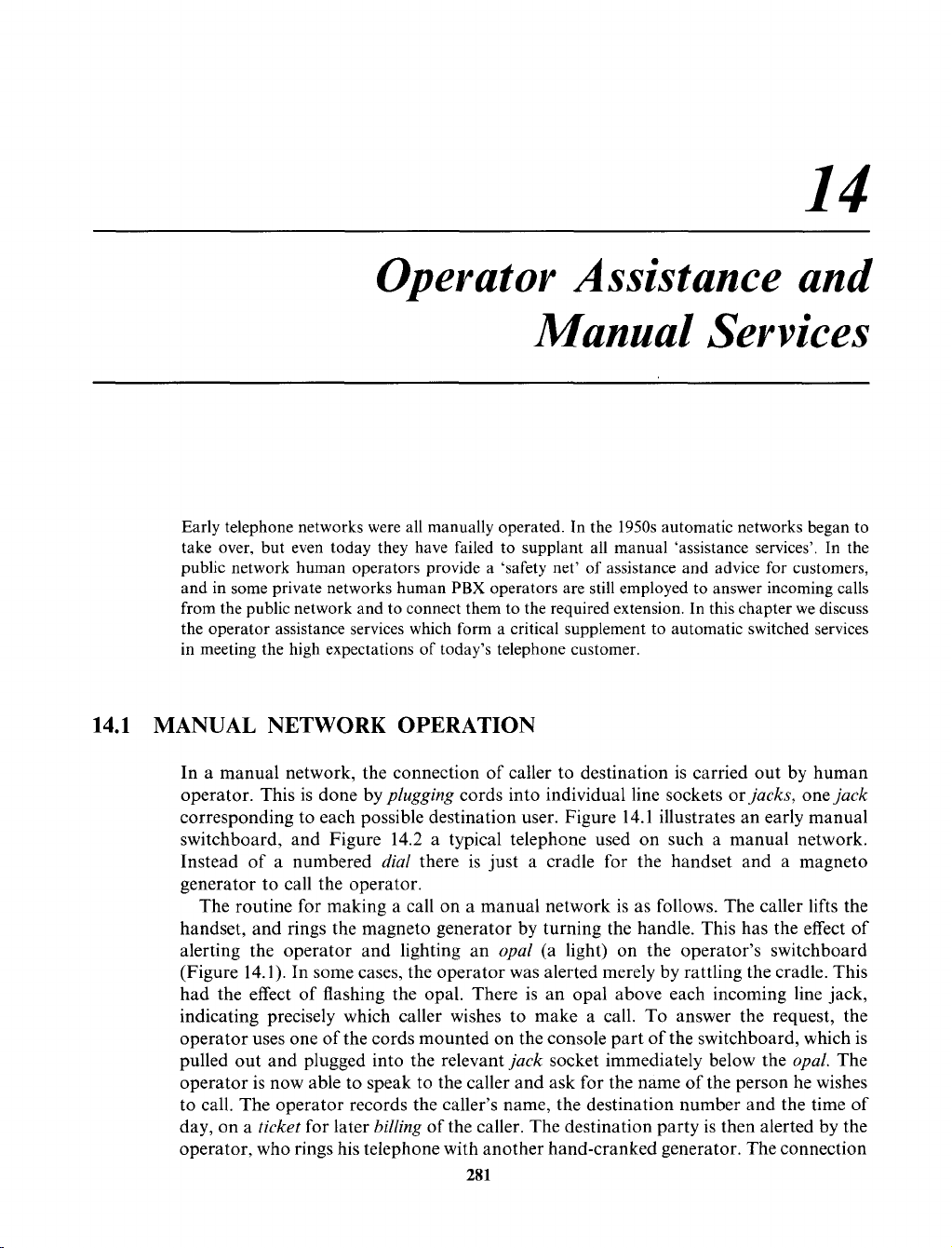switchboard, and Figure 14.2 a typical telephone used on such a manual network.