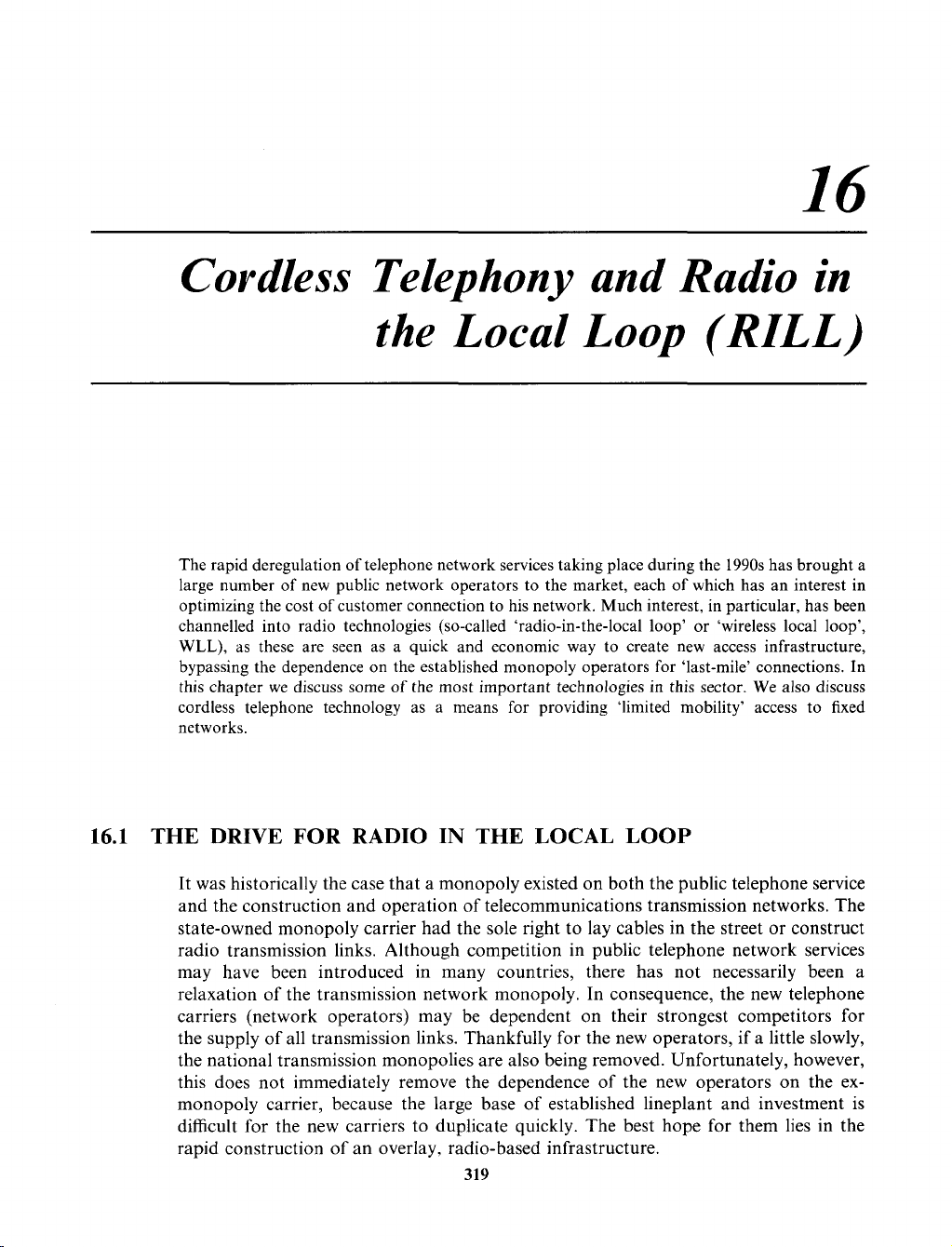 channelled into radio technologies (so-called ‘radio-in-the-local loop’ or ‘wireless local loop’,