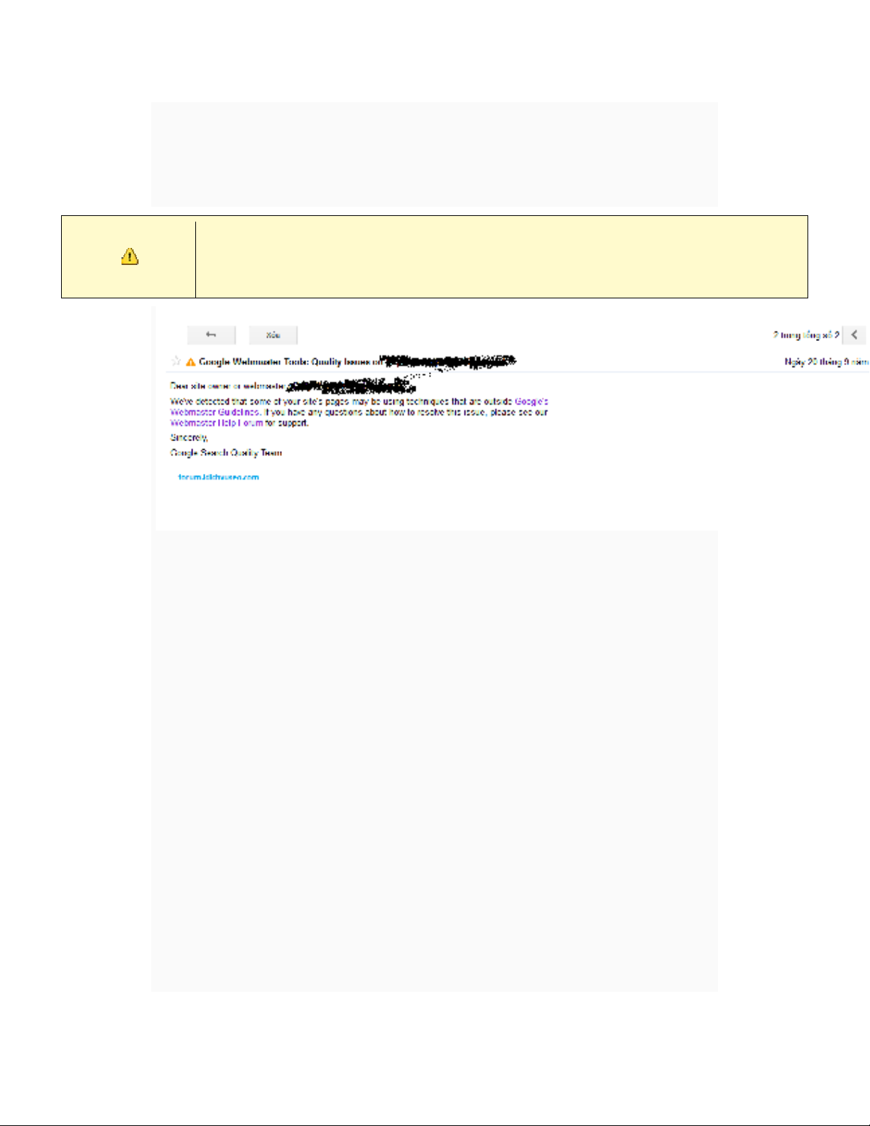 Thông báo về việc web vi phạm chính sách của google