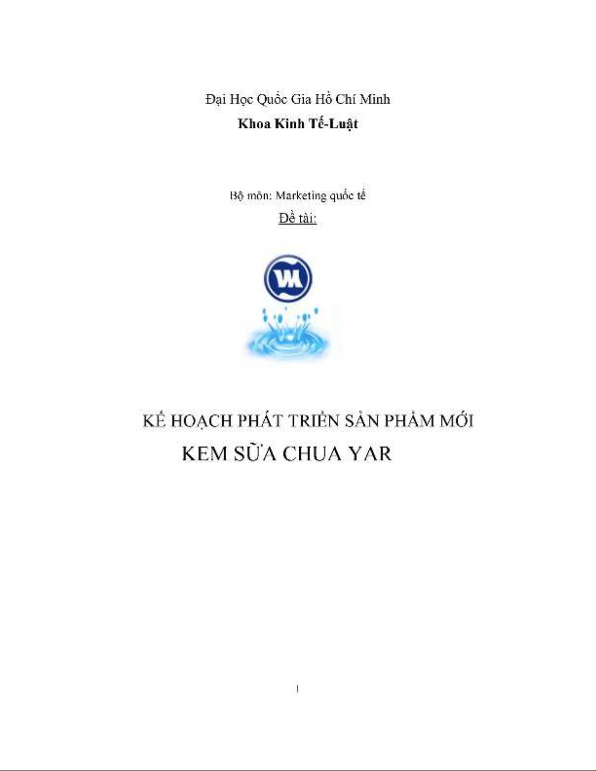 Đề tài Marketing quốc tế: Kế hoạch phát triển sản phẩm mới kem sữa chua Yar