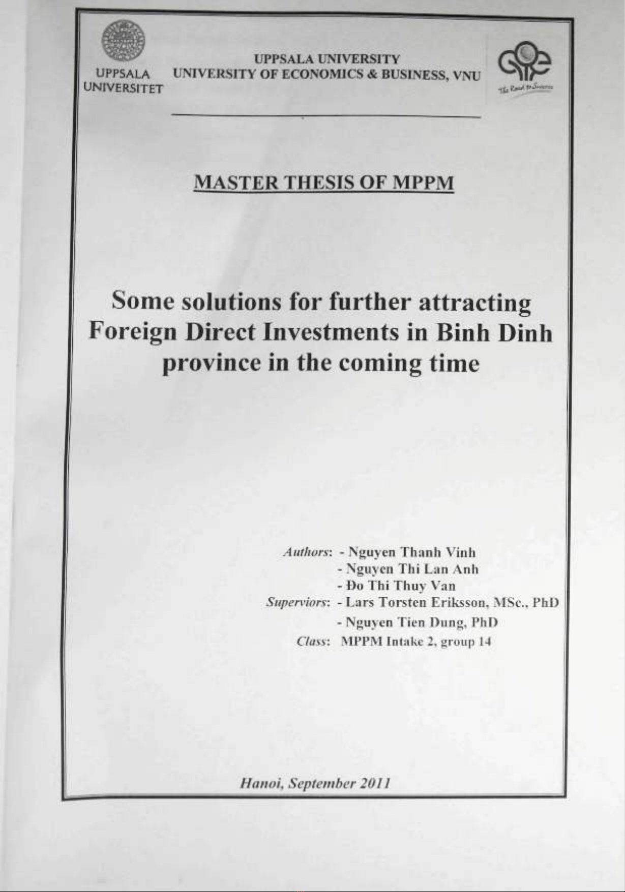 UPPSALA UNIVERSITY OF ECONOMICS & BUSINESS, VNU
